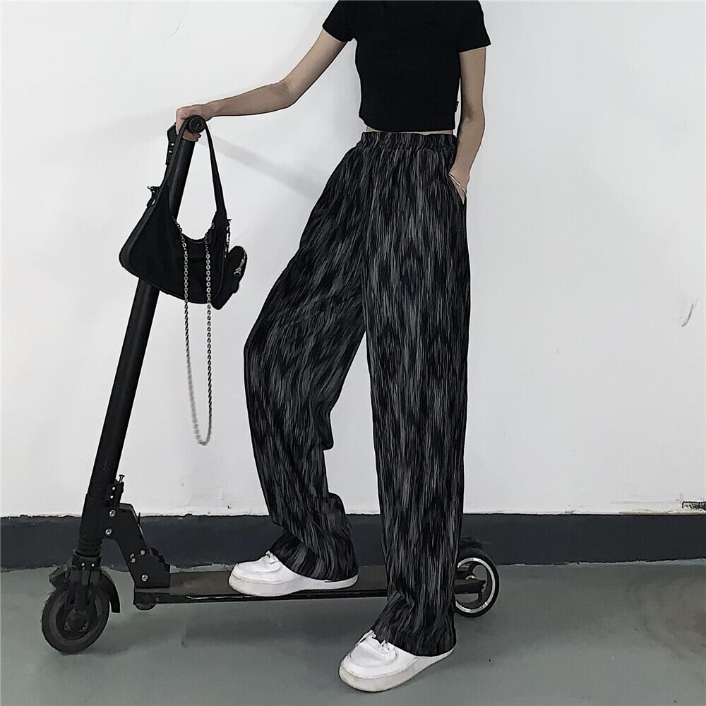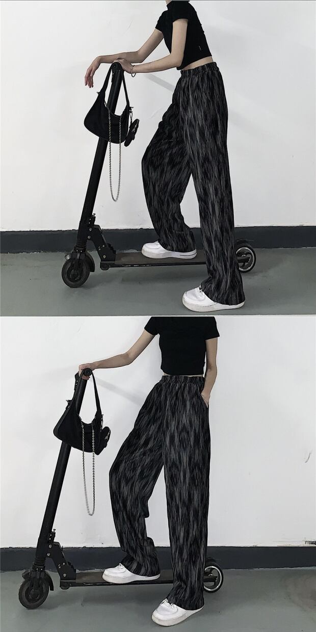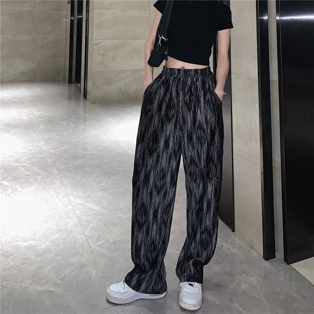 スプリングサマーカジュアルパンツ ルーズハイウェスト薄手ストライプ 春物 夏物 ケッペル25864338684