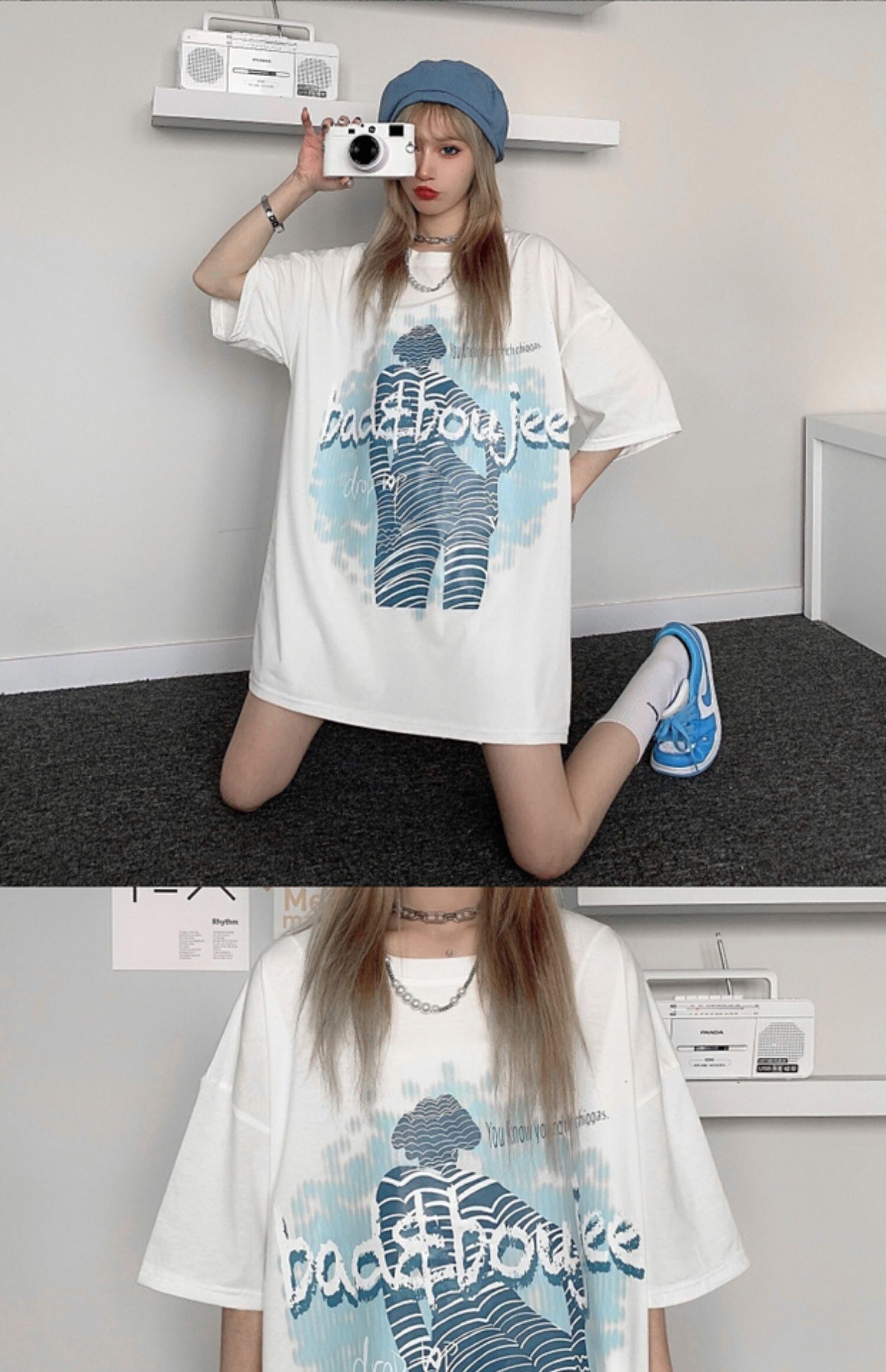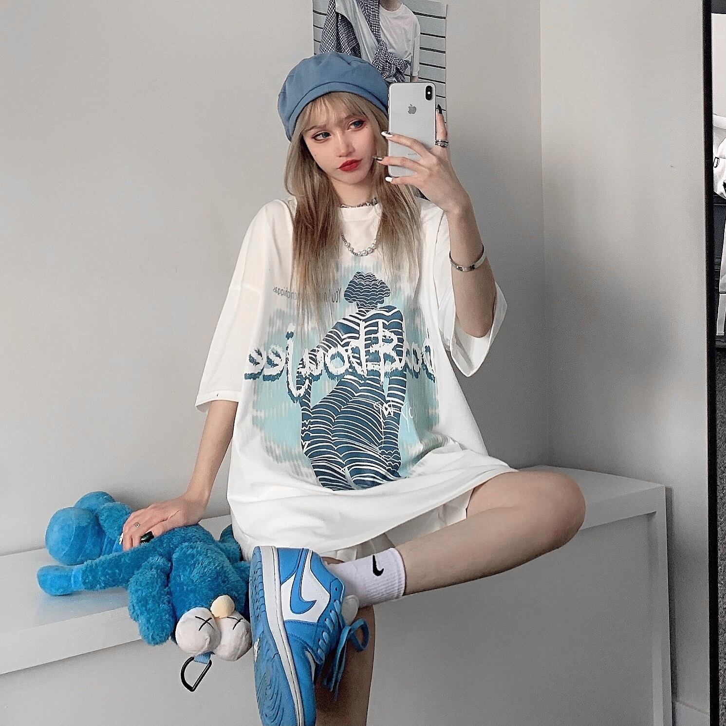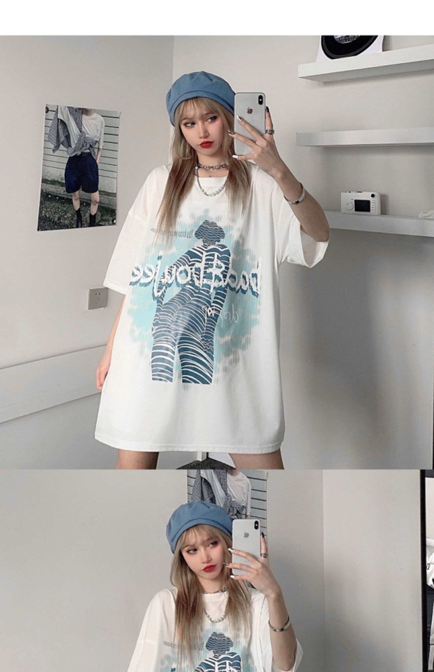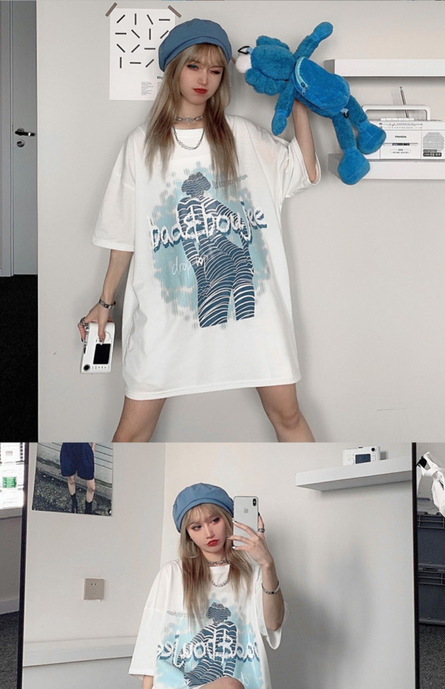 ルーズTシャツ シャツ レディースラウンドネックトップス サマーロング かわいい 夏物 Oネック ケッペル48356413606