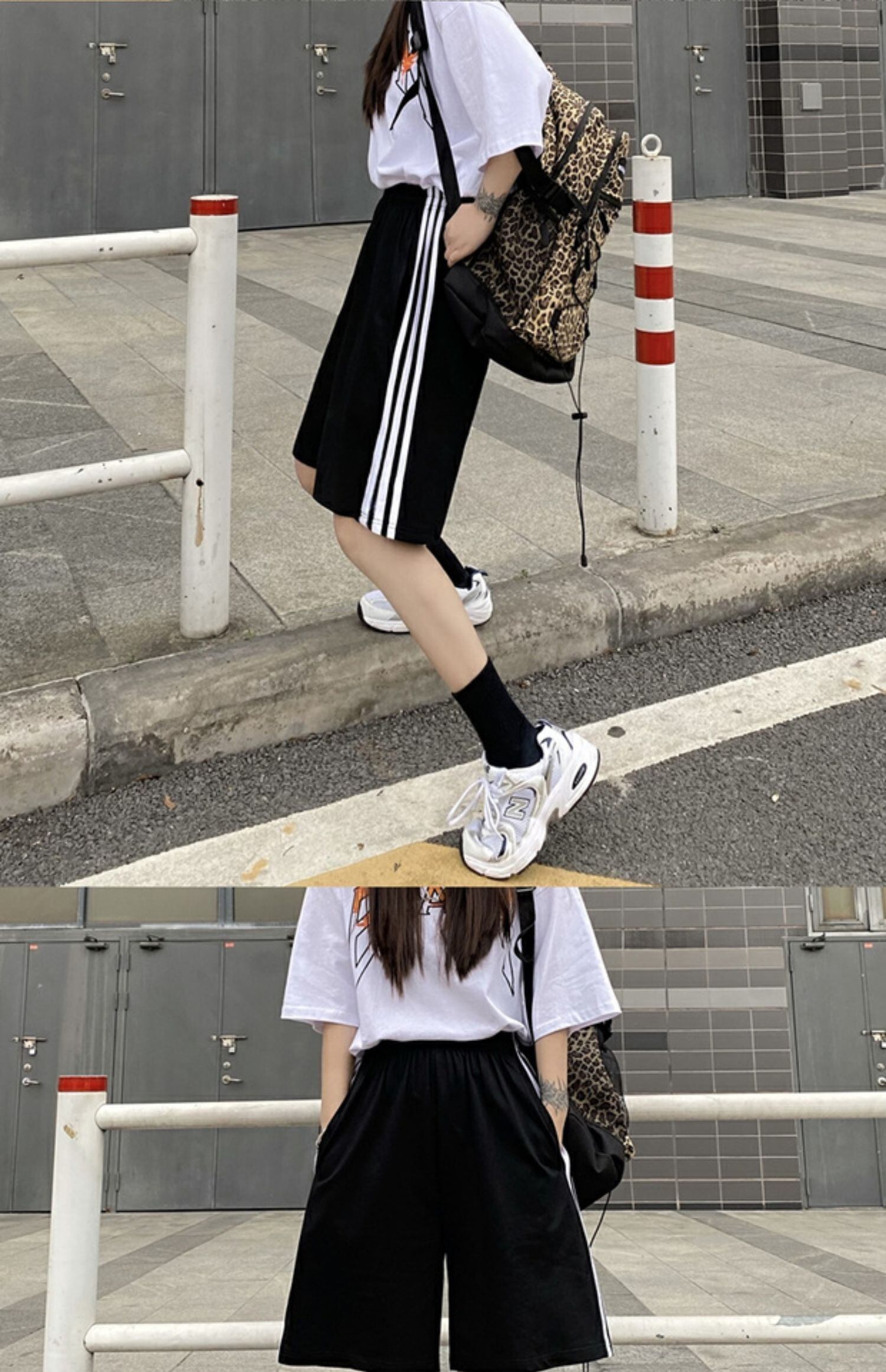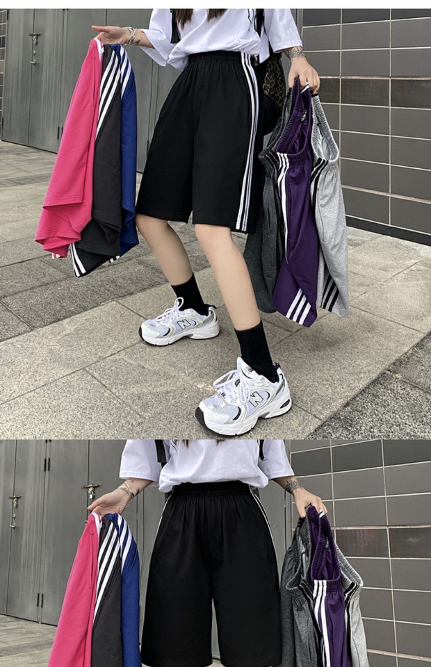 サマーショーツ レディースルーズカジュアルパンツ ストライプストレッチウェスト エラスティック 伸縮 夏物 ブルマー ケッペル48062963344