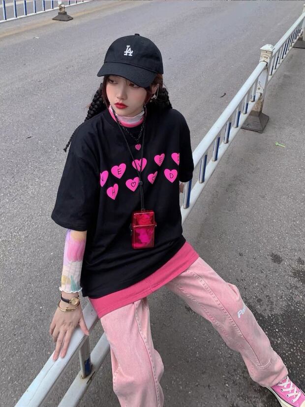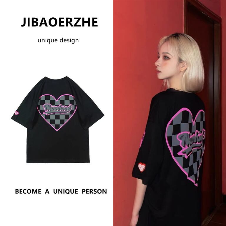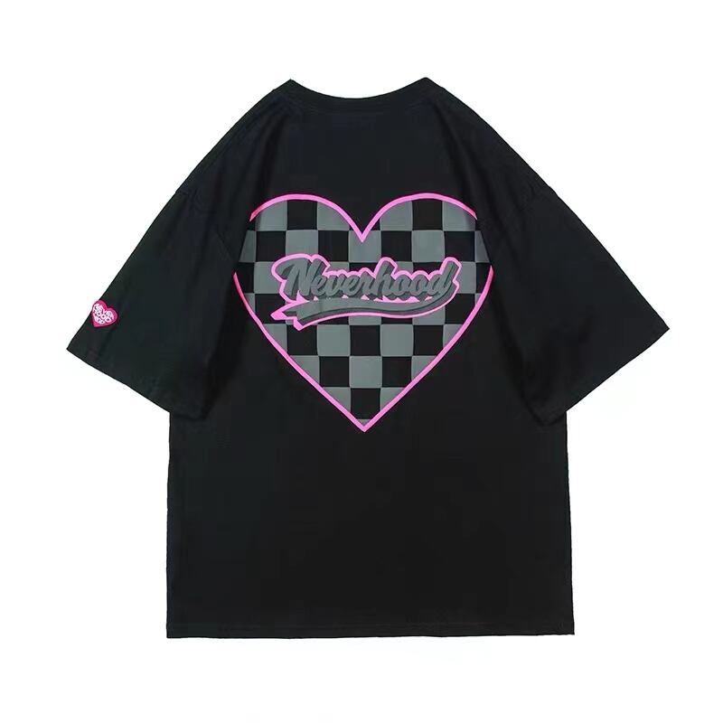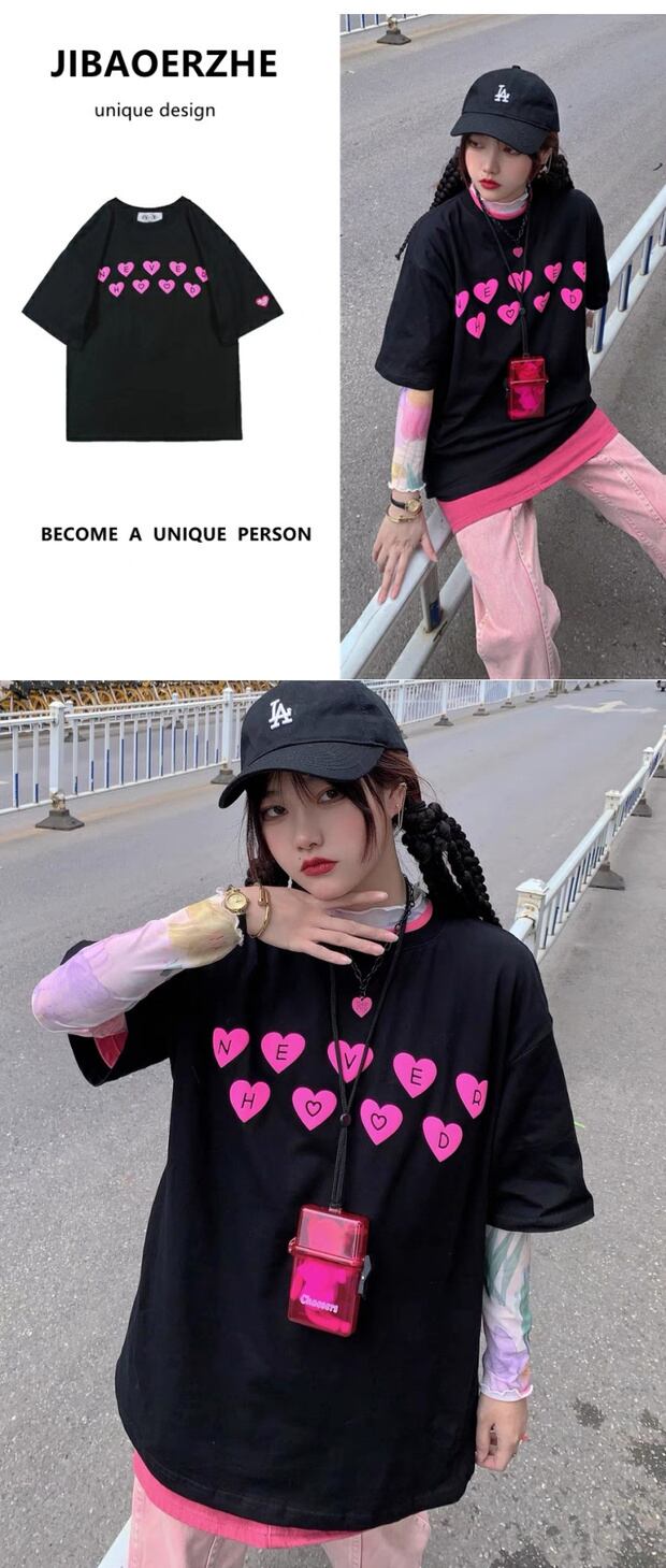 ルーズ半袖スリーブTシャツ ハートプリントバック ショート ハーフスリーブ ケッペル66805327814
