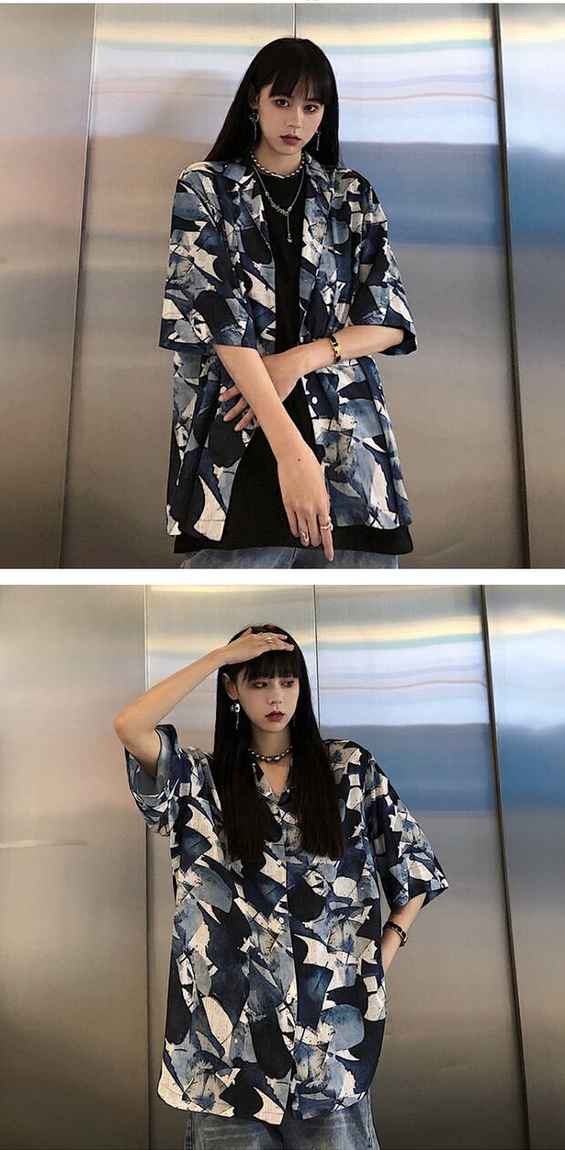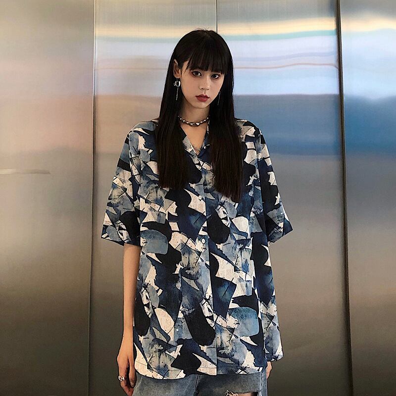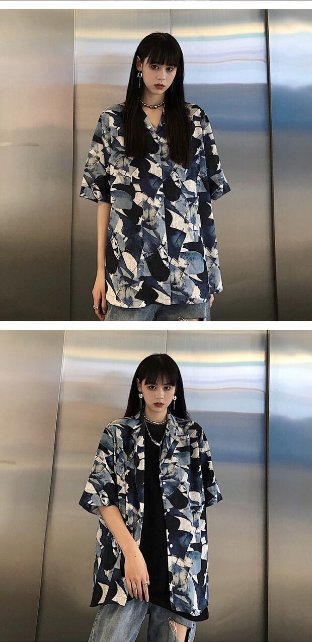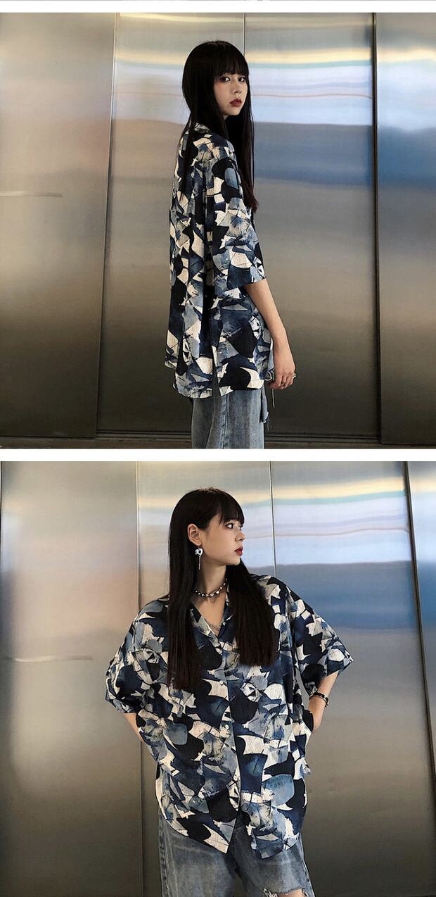 スタイルサマールーズプリントシャツ レディースダークスタンダードカジュアルトップス レトロ かわいい 夏物 ケッペル97597096723