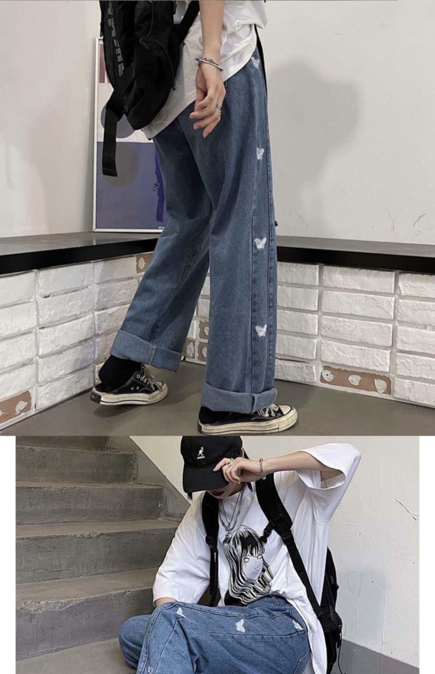 スプリングスタンダードジーンズ パンツ ルーズハイウェストカジュアル レッド レトロ 刺繍 春物 ケッペル41576309607