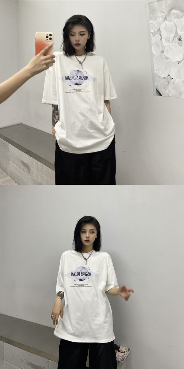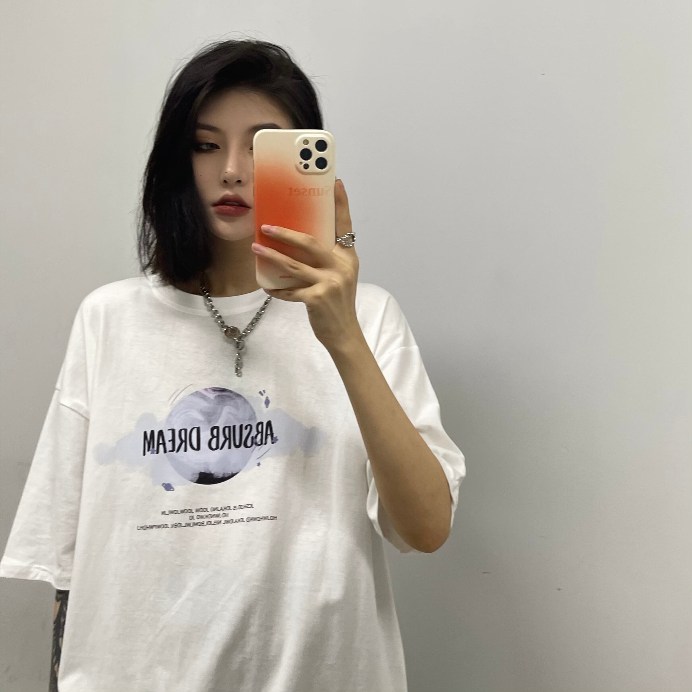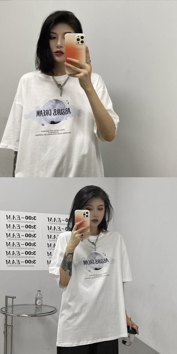 サマースタンダードルーズレッドレディースラウンドネックTシャツ シャツ プリント レトロ かわいい 夏物 Oネック ケッペル5094826897