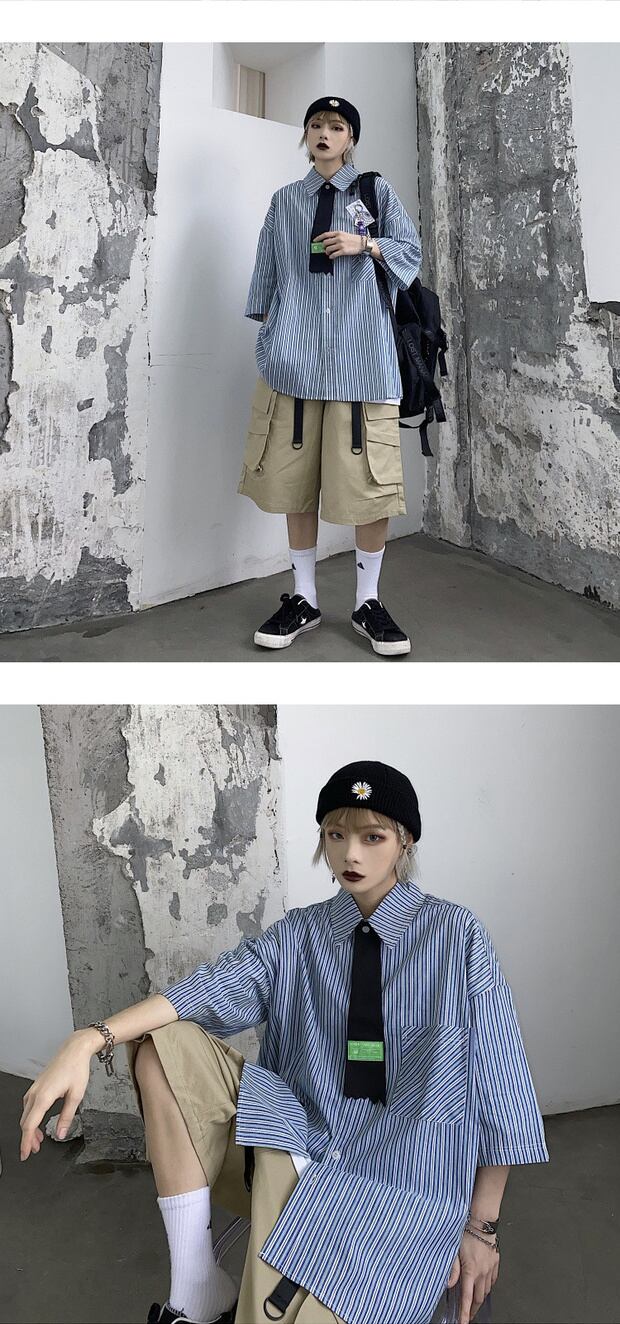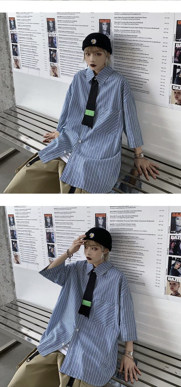 スタイルサマーストライプシャツ ルーズ かわいい 夏物 ケッペル11084520438