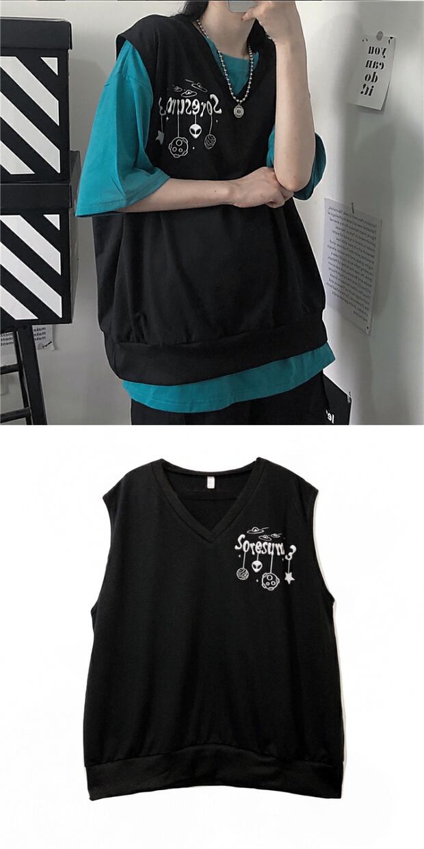 サマーカジュアルルーズノースリーブジャケット ホワイトTシャツ シャツ 夏物 ケッペル60967780251
