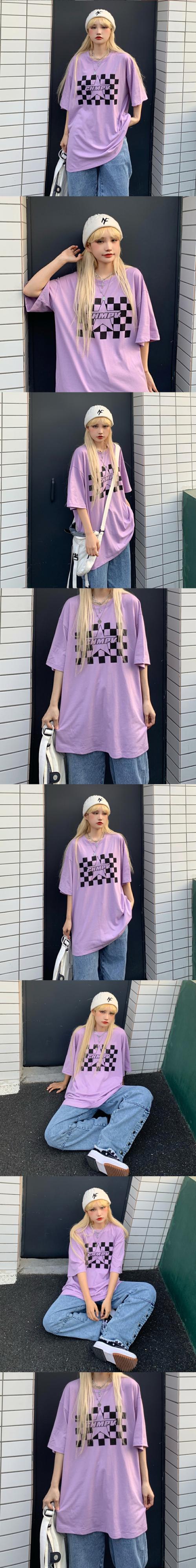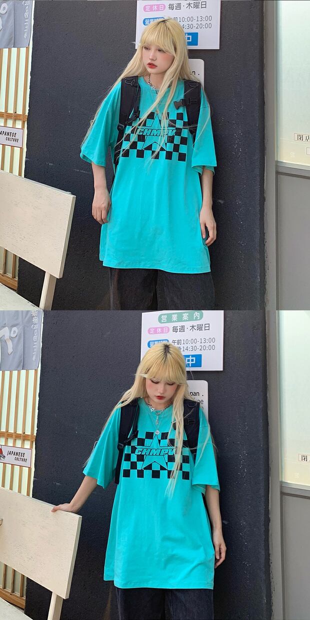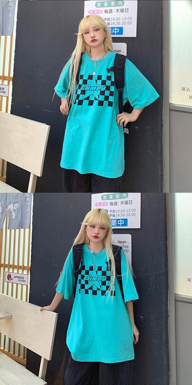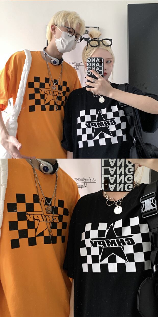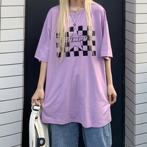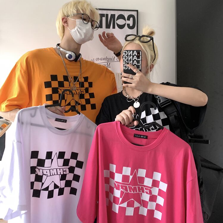 サマールーズTシャツ シャツ スタンダード格子柄プリントラウンドネック レトロ 夏物 Oネック ケッペル37474332476