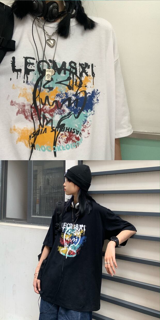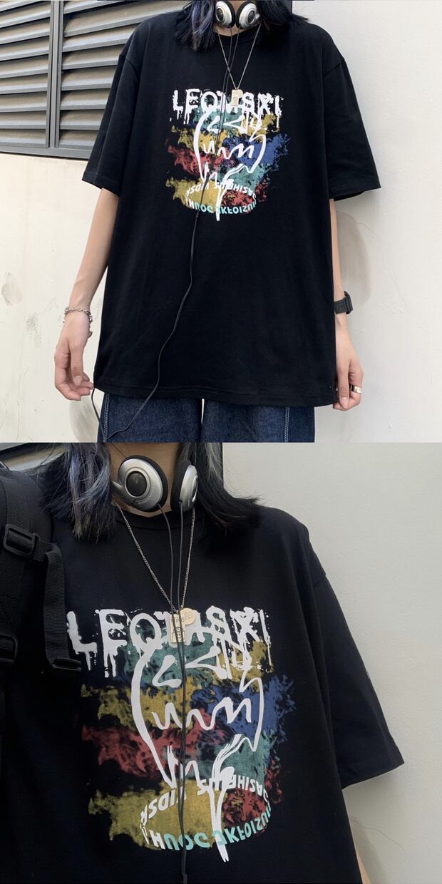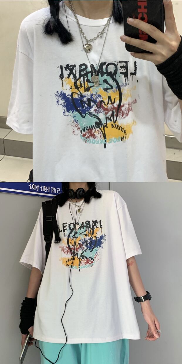 サマーカジュアルプリントラウンドネックTシャツ シャツ レディーススタイル ストリート 夏物 Oネック ケッペル34401415494