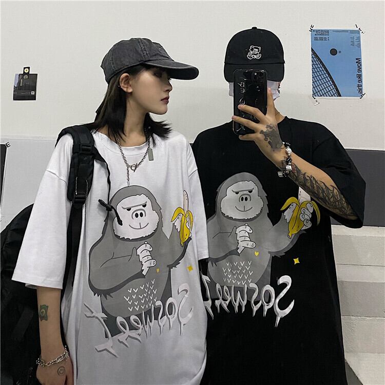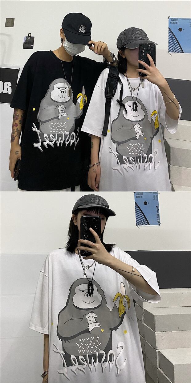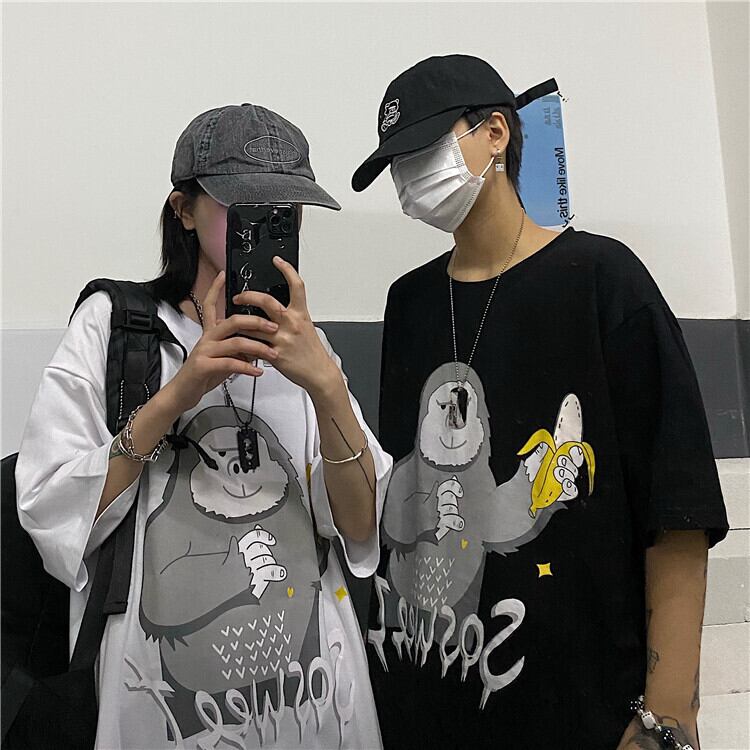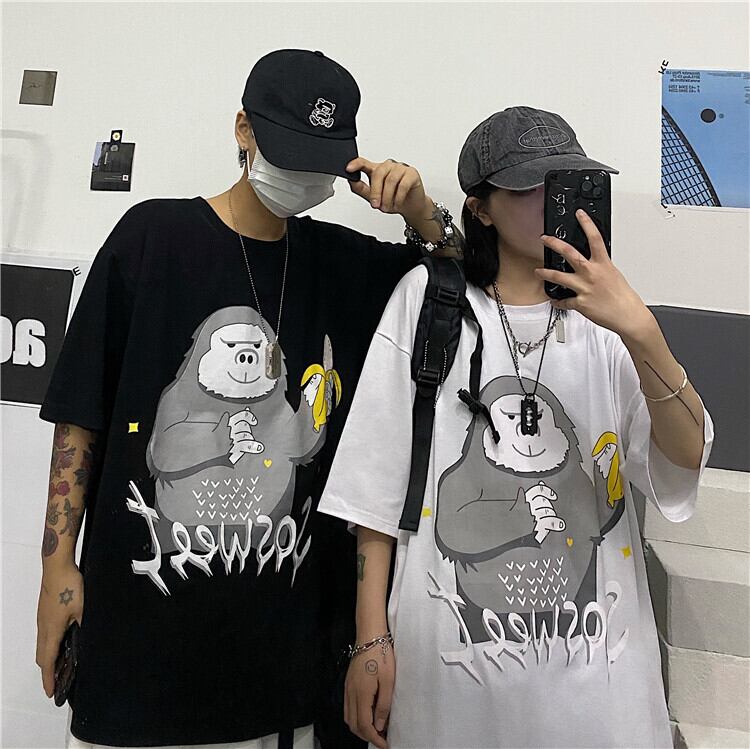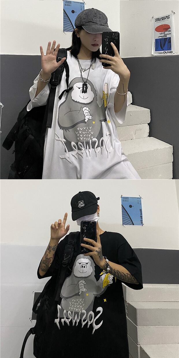 カジュアルTシャツ ルーズプリント柄ラウンドネックトップス Oネック ケッペル99029160847