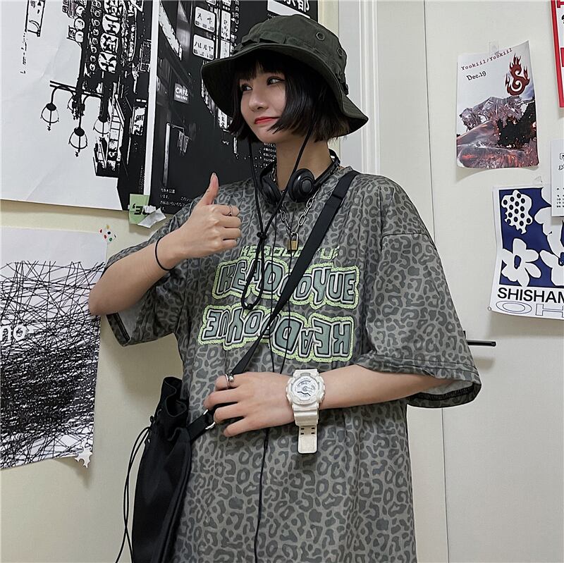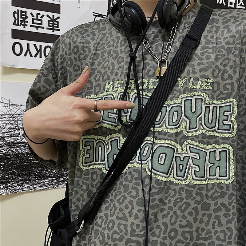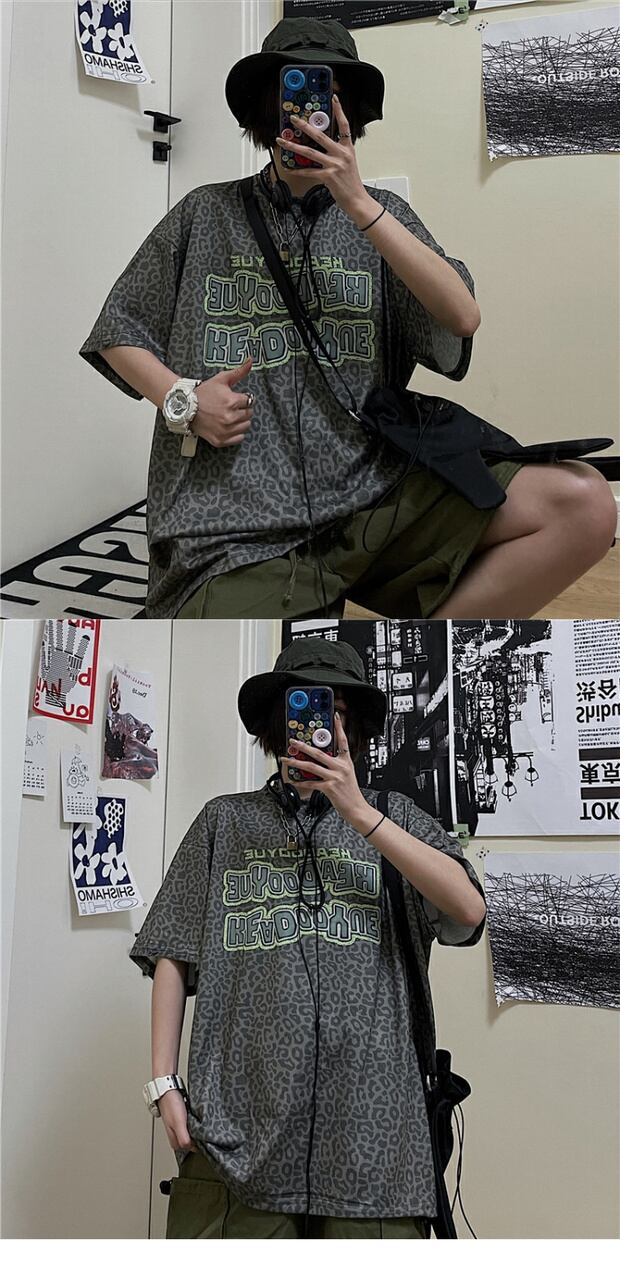 スタンダードルーズTシャツ ダークレオパードプリント柄半袖スリーブサマートップス ショート レトロ ハーフスリーブ 夏物 ケッペル53170796630
