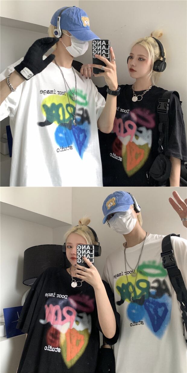 ルーズTシャツ スタイルプリントレディースカジュアルトップス ストリート 大きめサイズ かわいい ケッペル1597080823