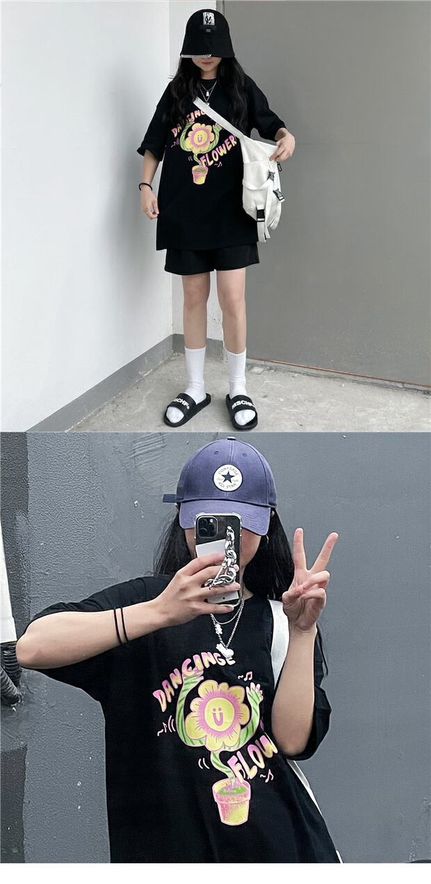 スタイルサマールーズTシャツ カジュアルスリーブスタンダードプリント半袖 ショート レトロ ハーフスリーブ ストリート 夏物 ケッペル30465083363