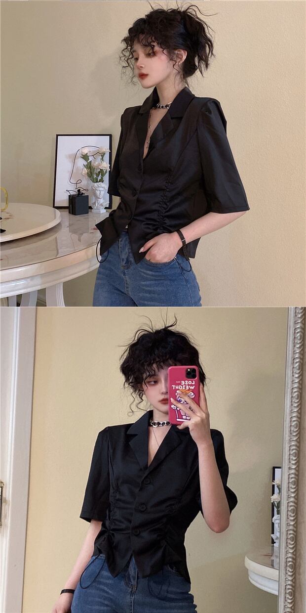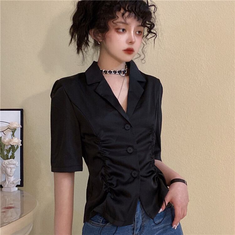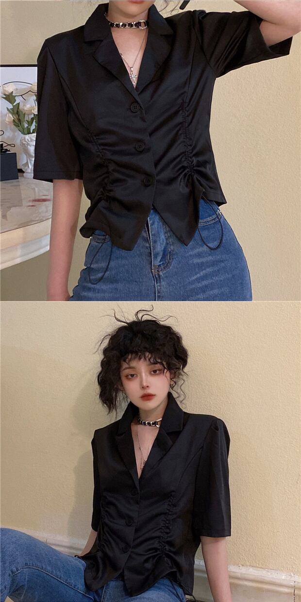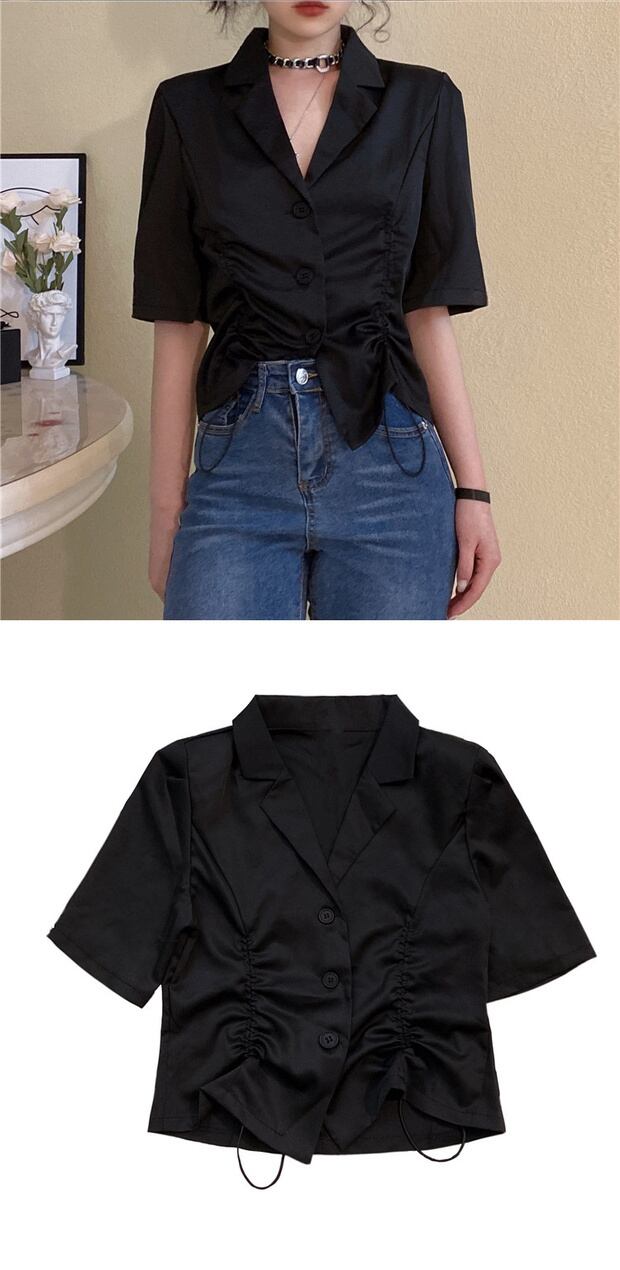 サマースリムフィットシャツ スタイルギャザープリーツショートウェストカジュアル 夏物 ケッペル96311673688