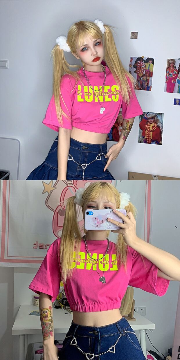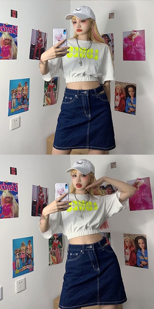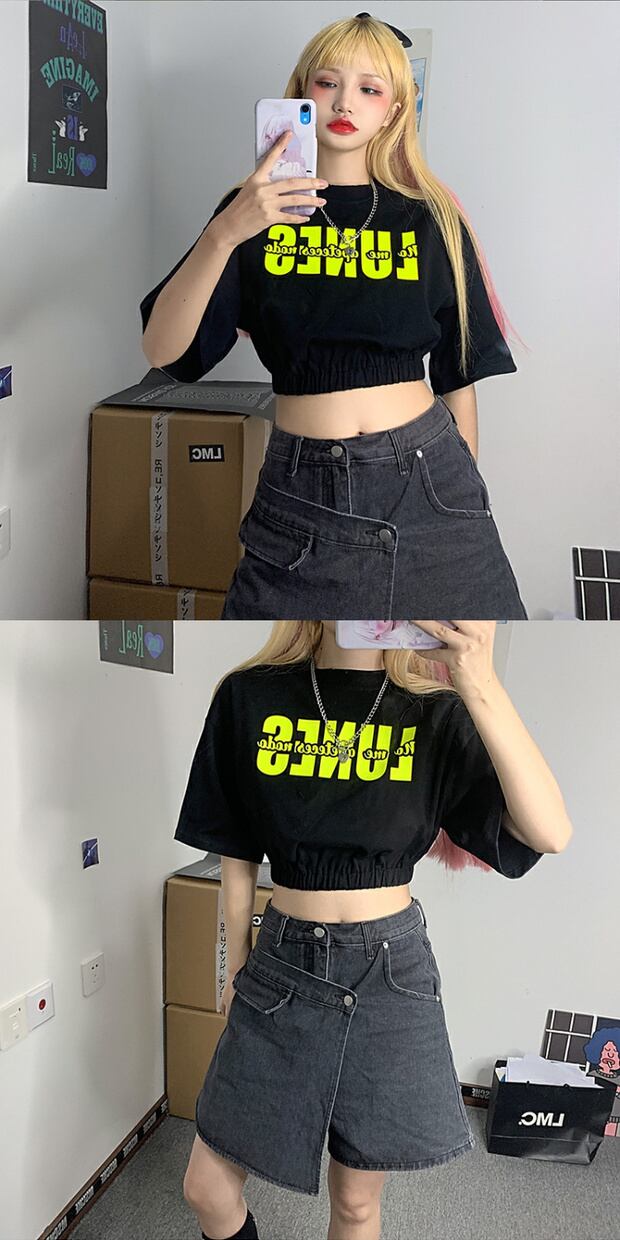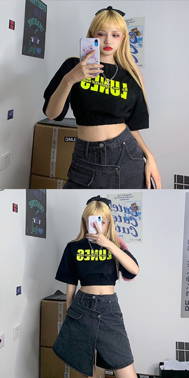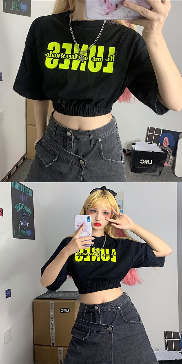 スタイルサマーカジュアルTシャツ ハイウェストウェストクロップドプリントトップス 夏物 ケッペル56354365356