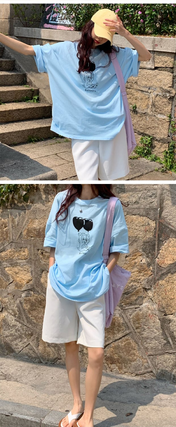 サマールーズスタイルプリント柄Tシャツ 夏物 ケッペル50599117199