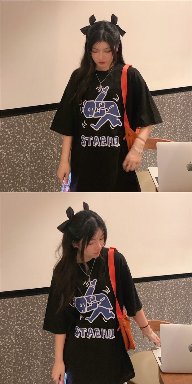 ロングカジュアルTシャツ シャツ サマールーズプリントレディース コットン 夏物 ピュア ケッペル24736907469