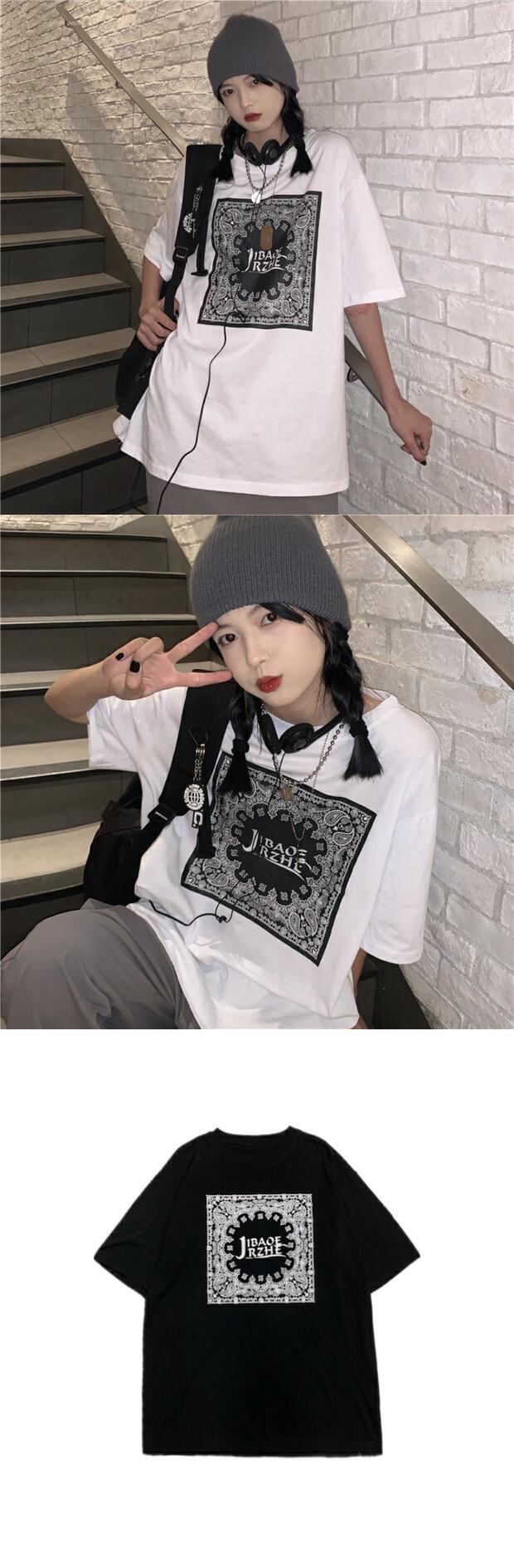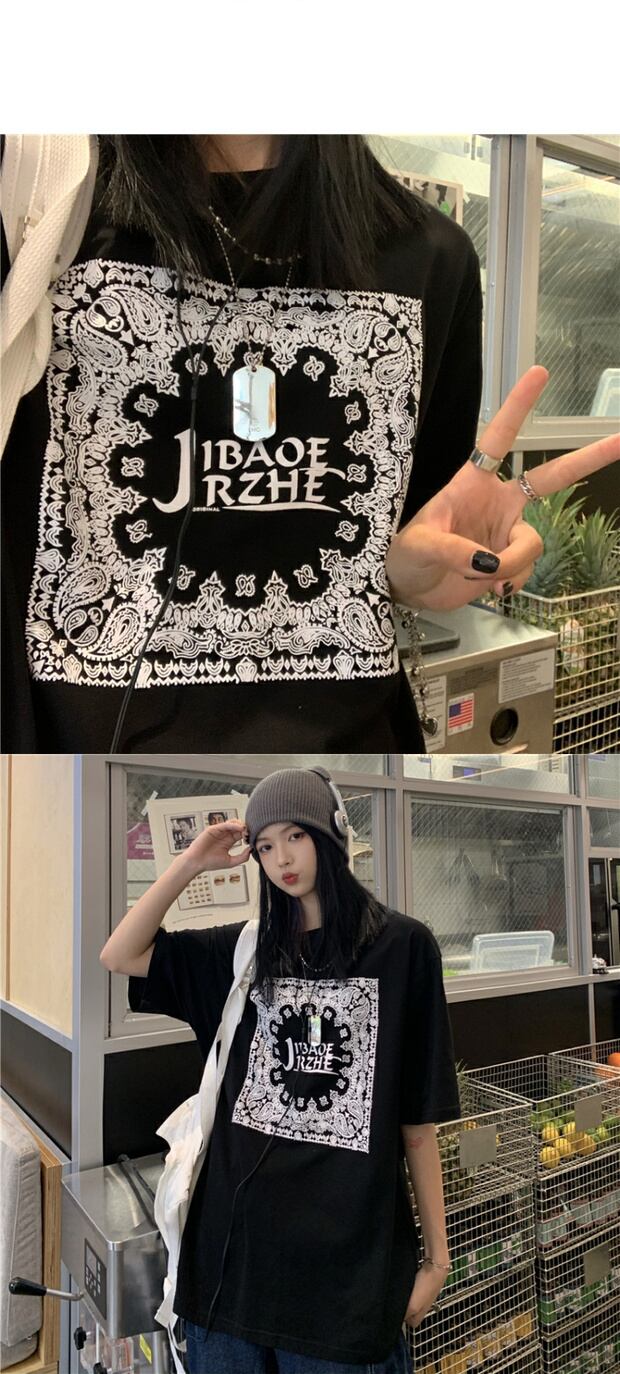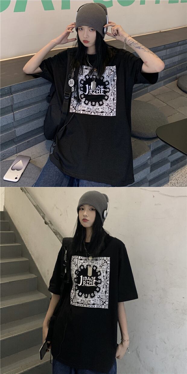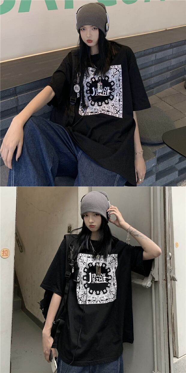 ルーズFlowerデザイン プリント柄 Tシャツ フラワーデザイン ケッペル71971146065