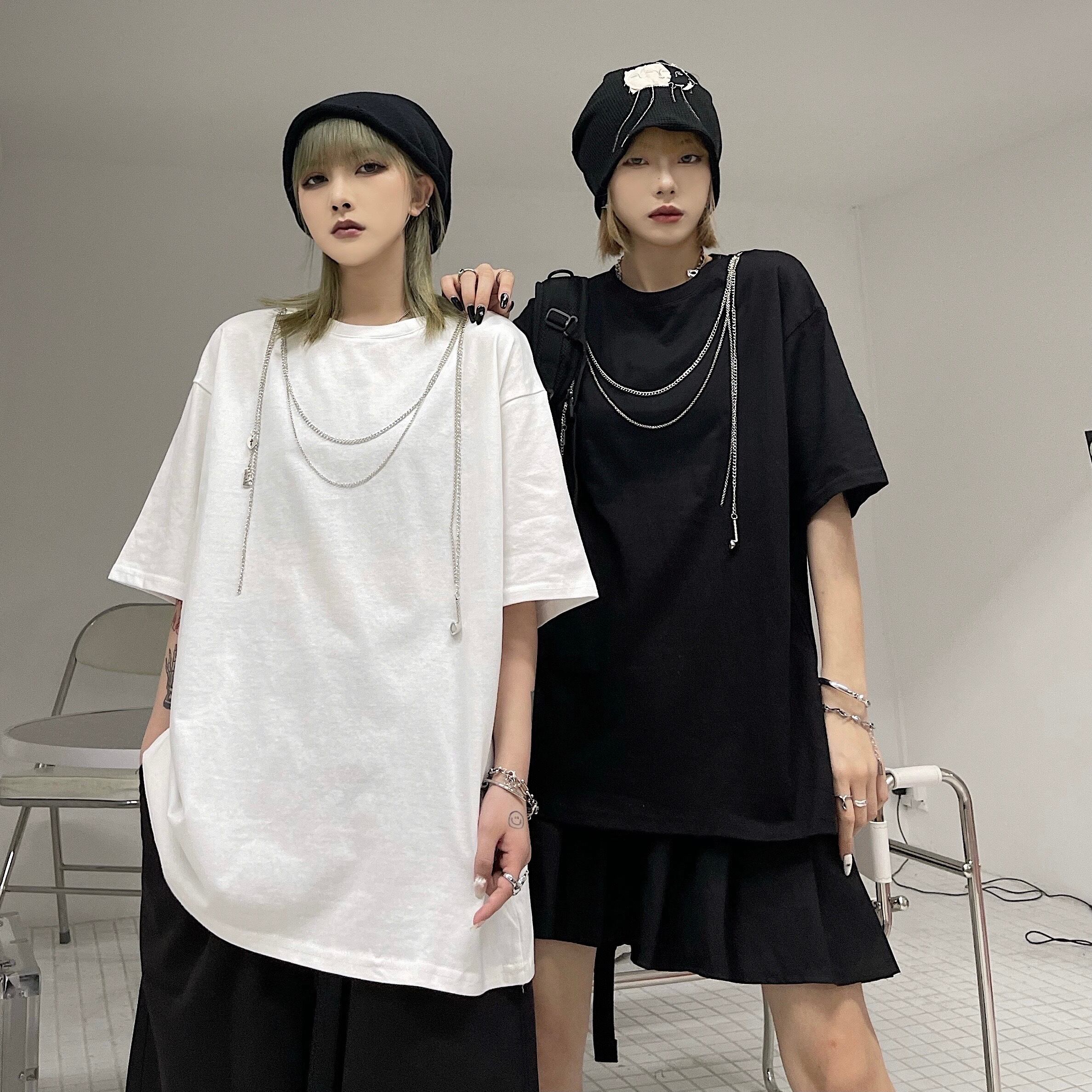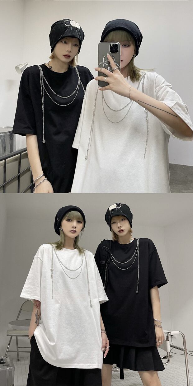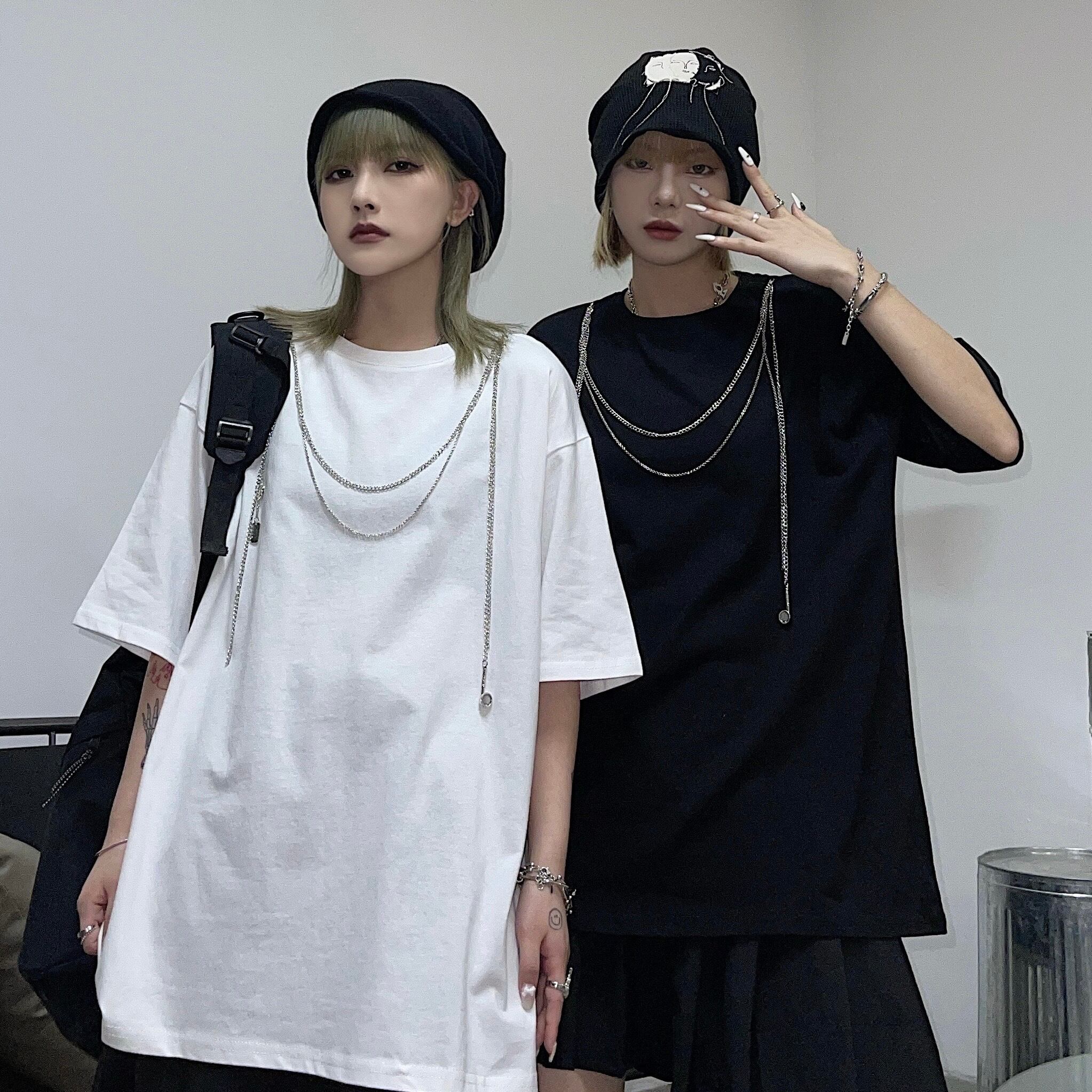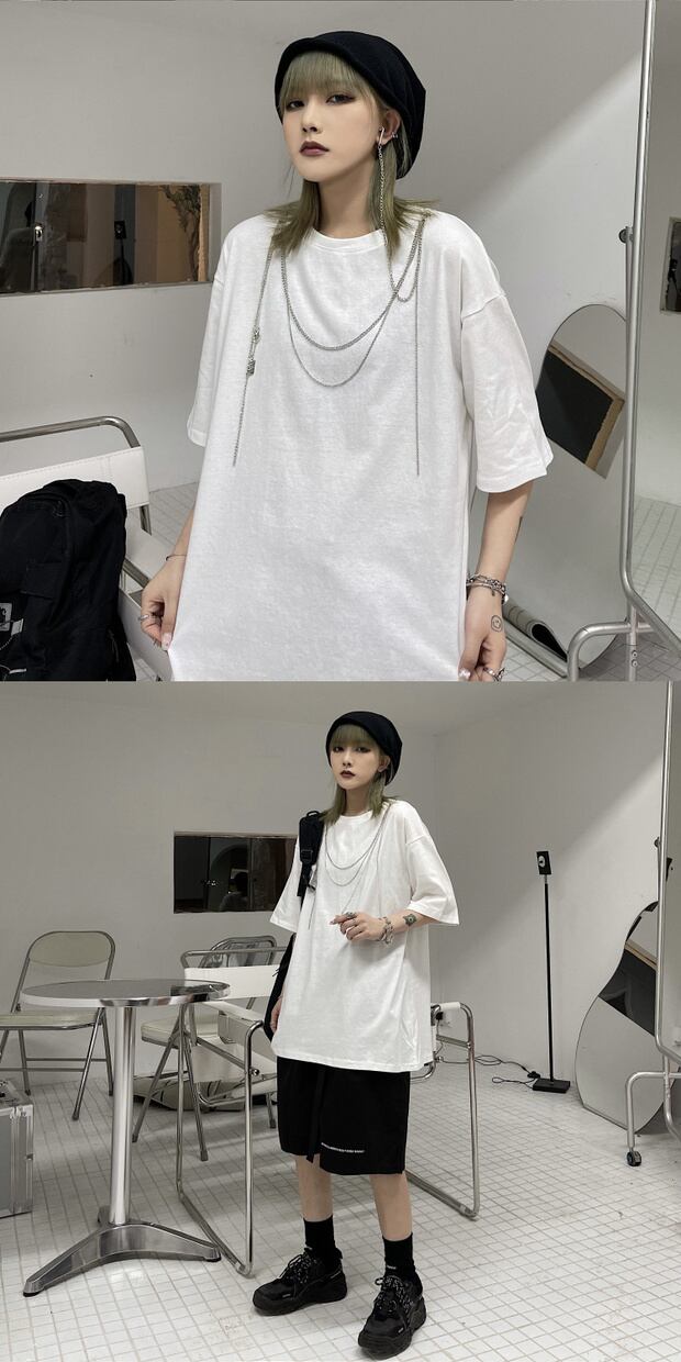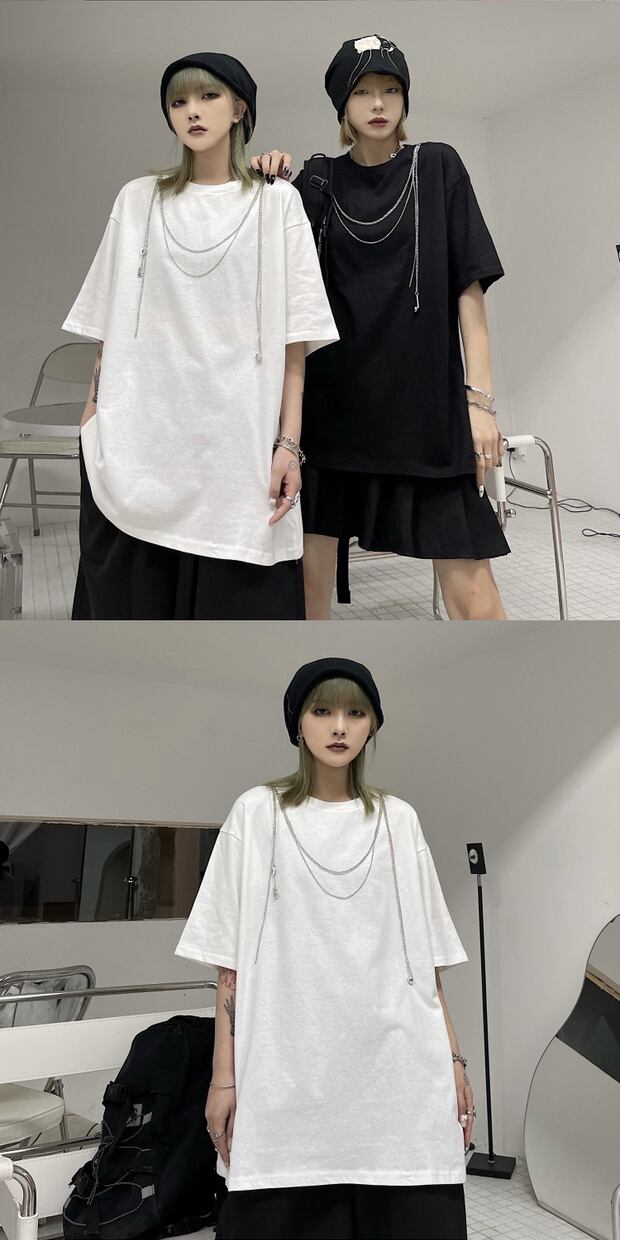スタイルサマーホワイトTシャツ シャツ メタルチェーン ルーズレディースソリッド カラー 夏物 ソリッドカラー ケッペル11540543637
