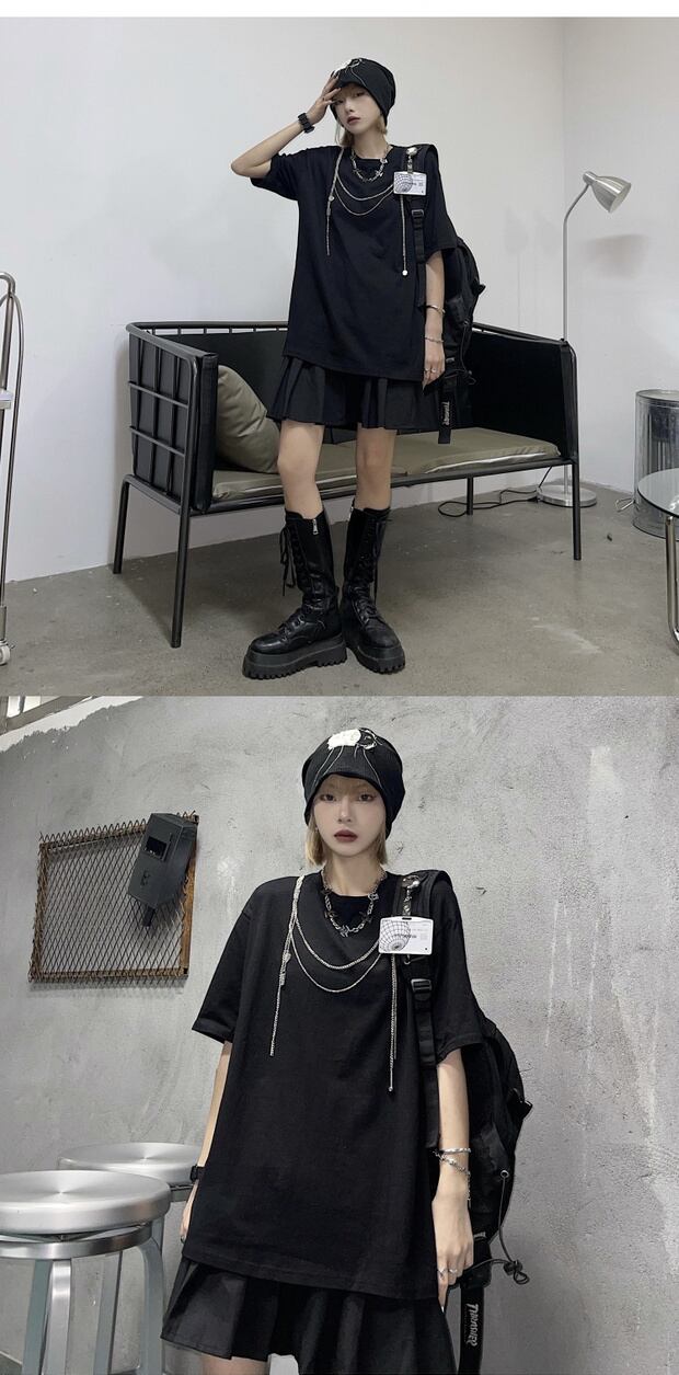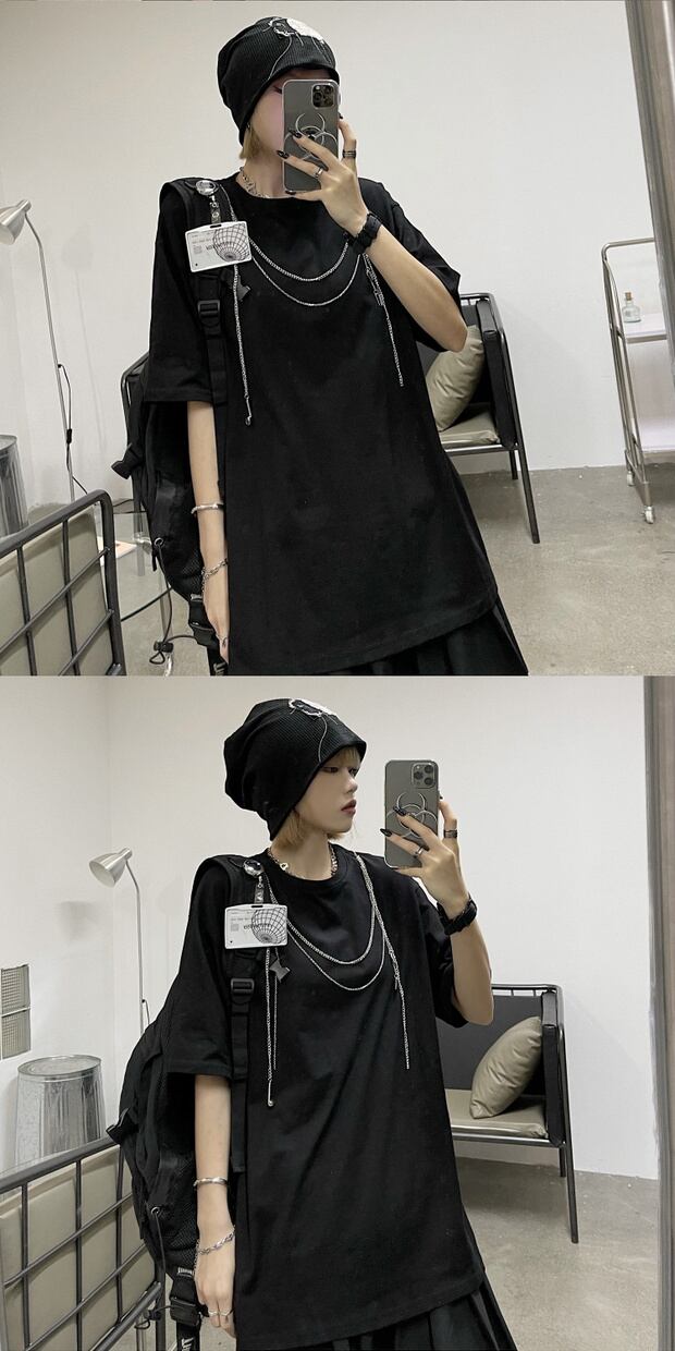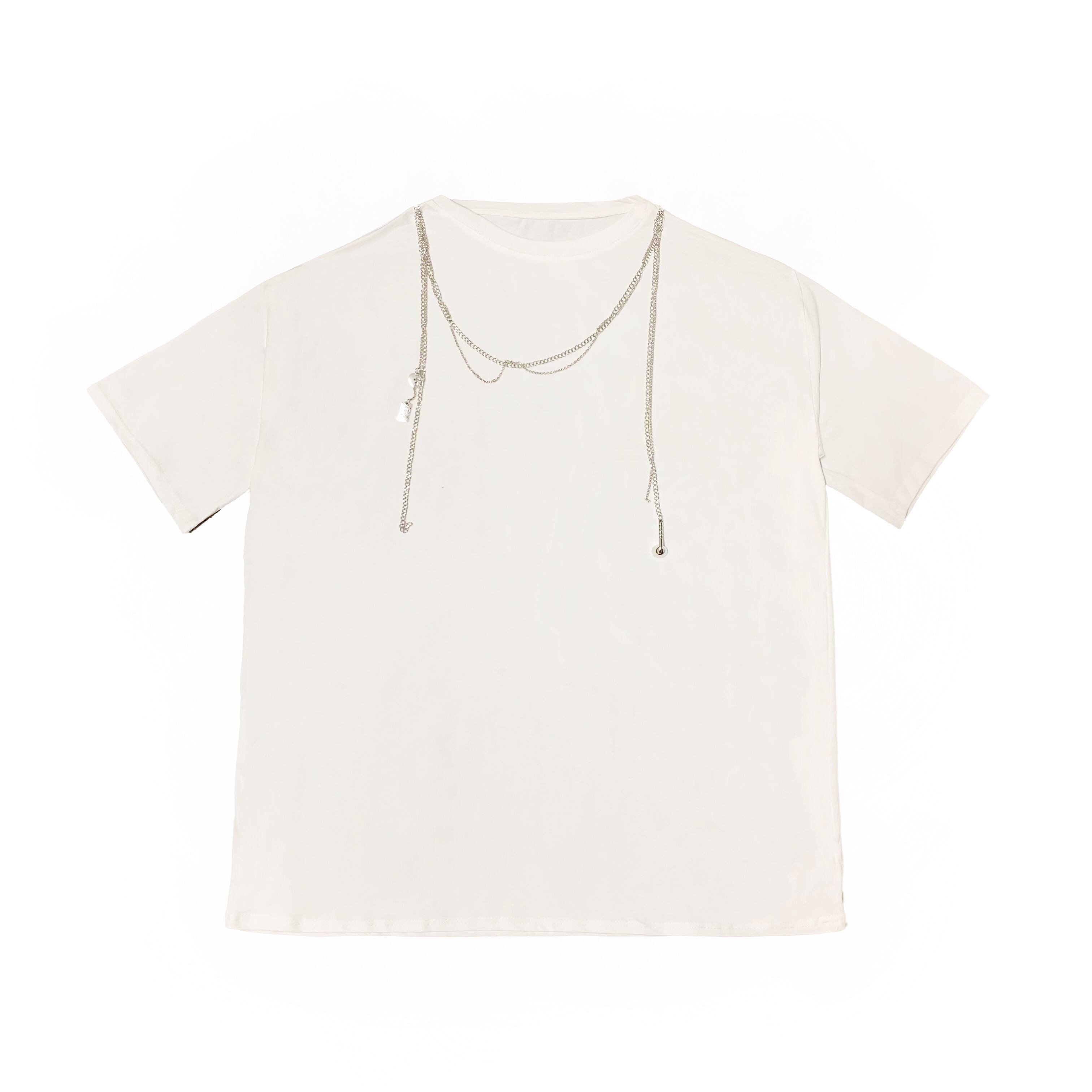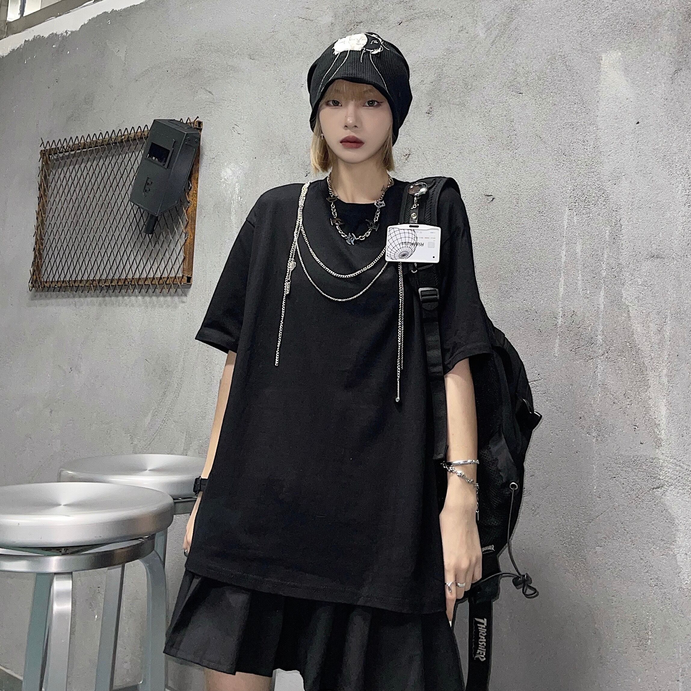 スタイルサマーホワイトTシャツ シャツ メタルチェーン ルーズレディースソリッド カラー 夏物 ソリッドカラー ケッペル11540543637