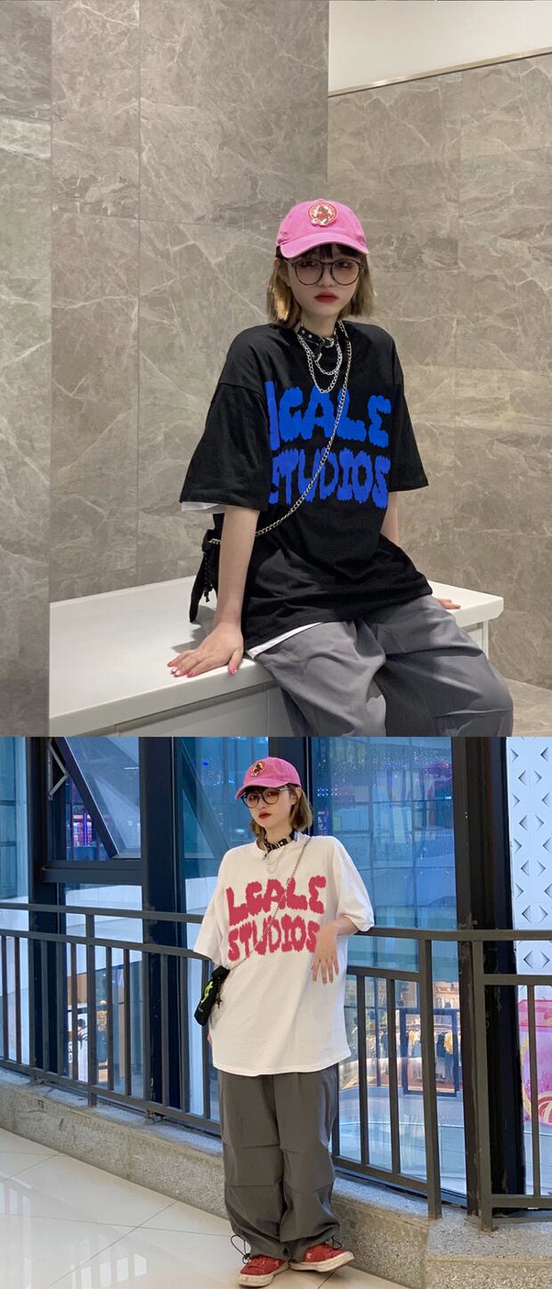 サマーカジュアルルーズTシャツ プリントスタイルトップス ストリート 夏物 ケッペル86121824144