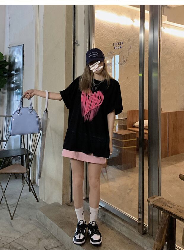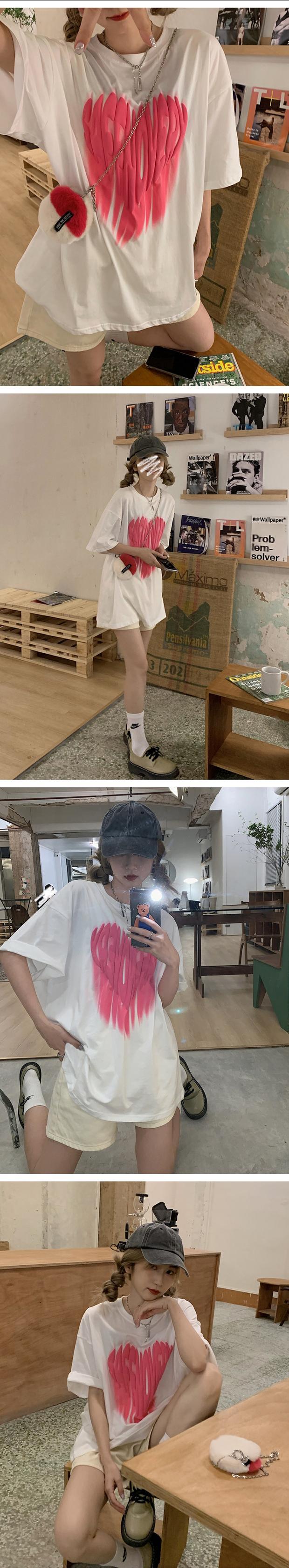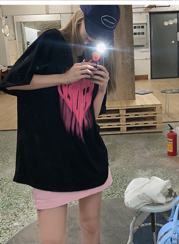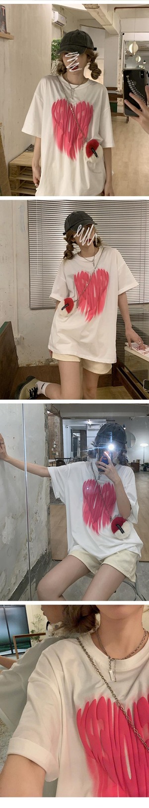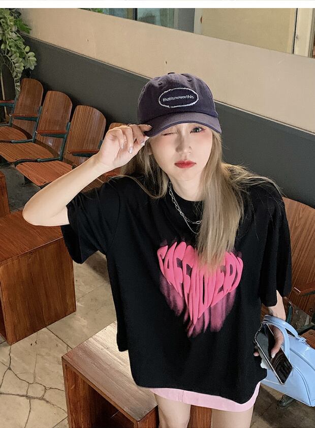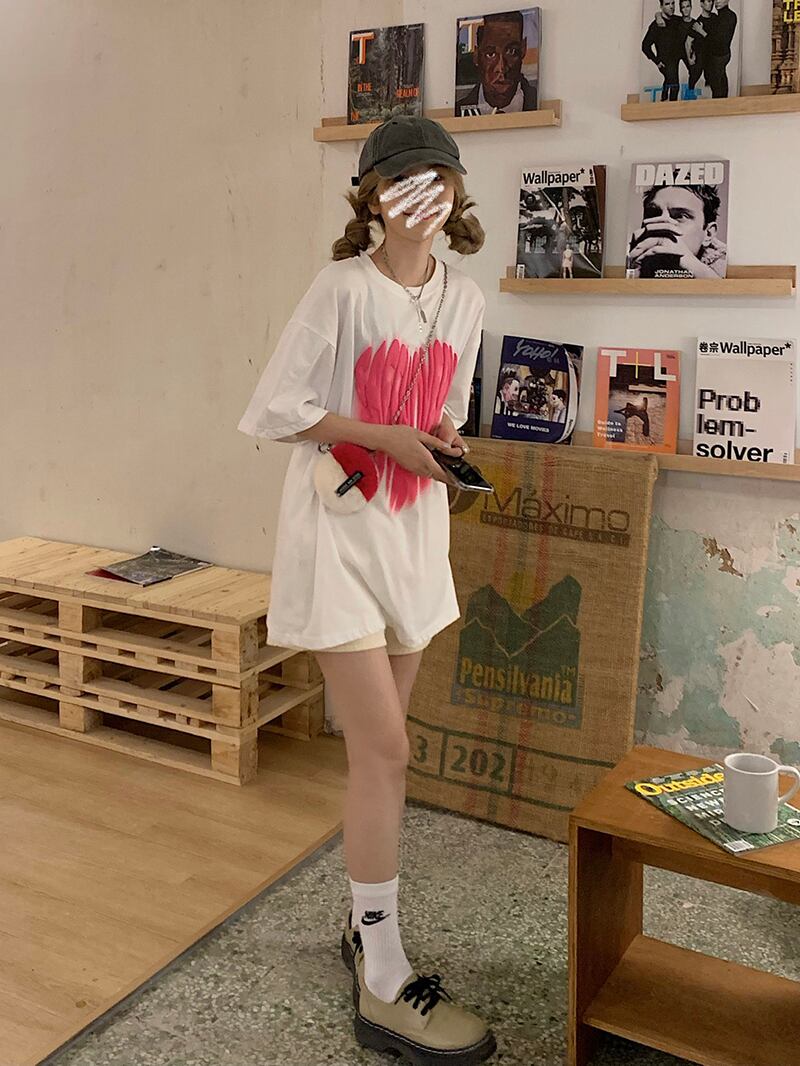 プリント柄Tシャツ ルーズラウンドネック Oネック ケッペル28455877347
