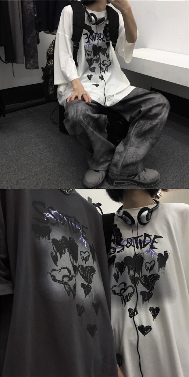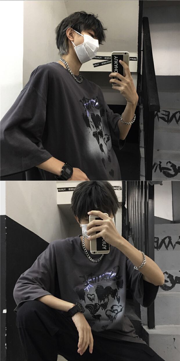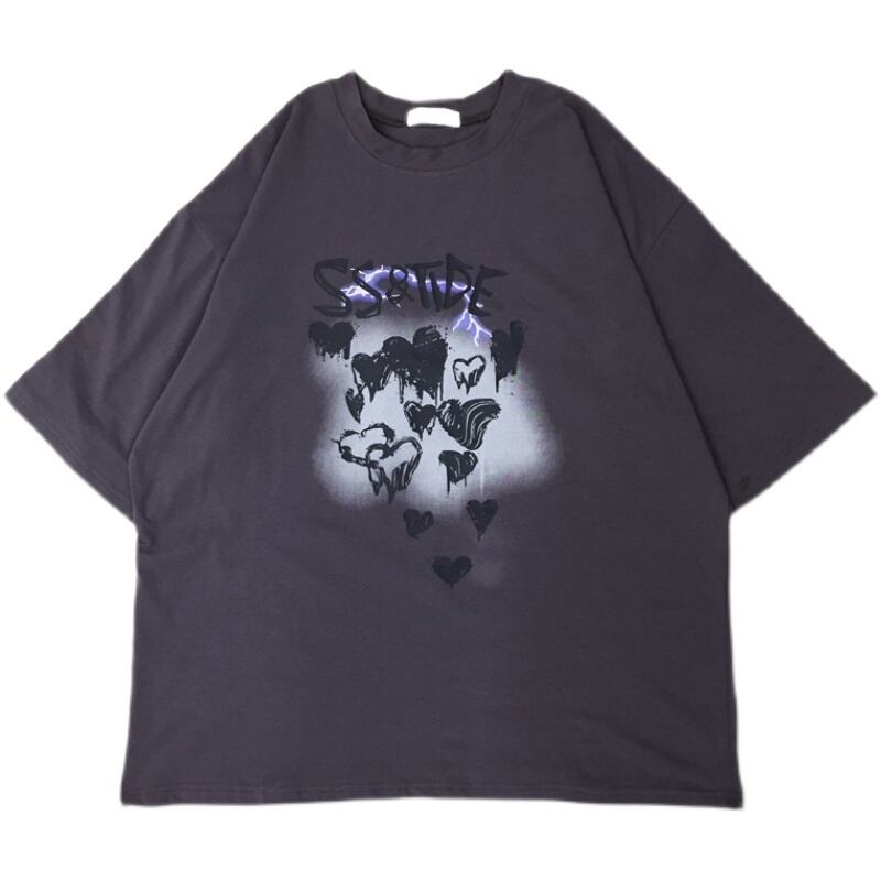 スタイルサマートップス ダークTシャツ ルーズラウンドネック 大きめサイズ かわいい 夏物 Oネック ケッペル27396970364