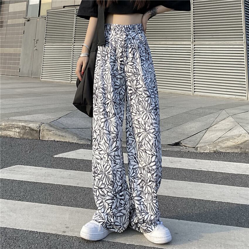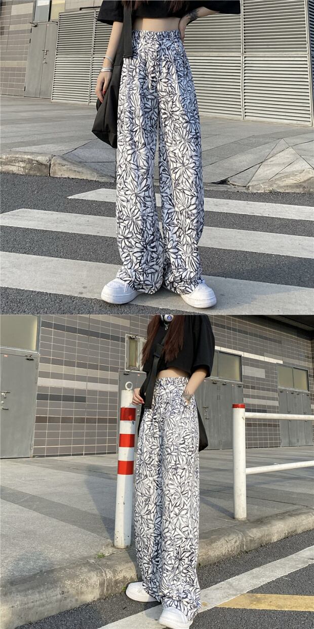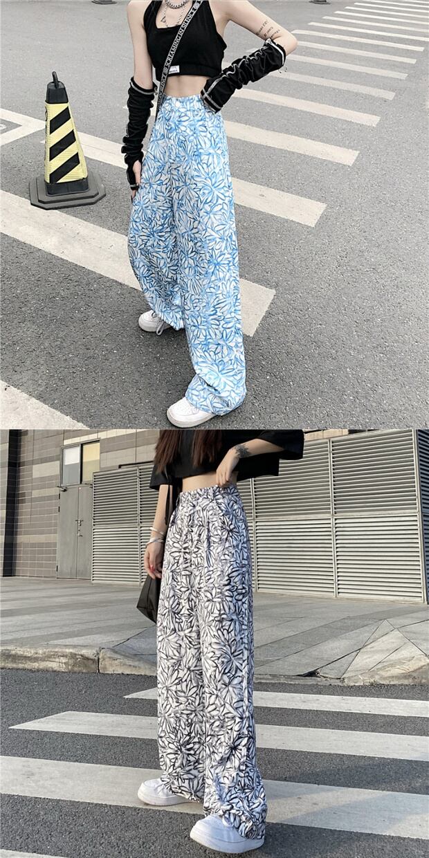 サマーパンツ プリントルーズハイウェストウェストカジュアル 夏物 ケッペル2116099519