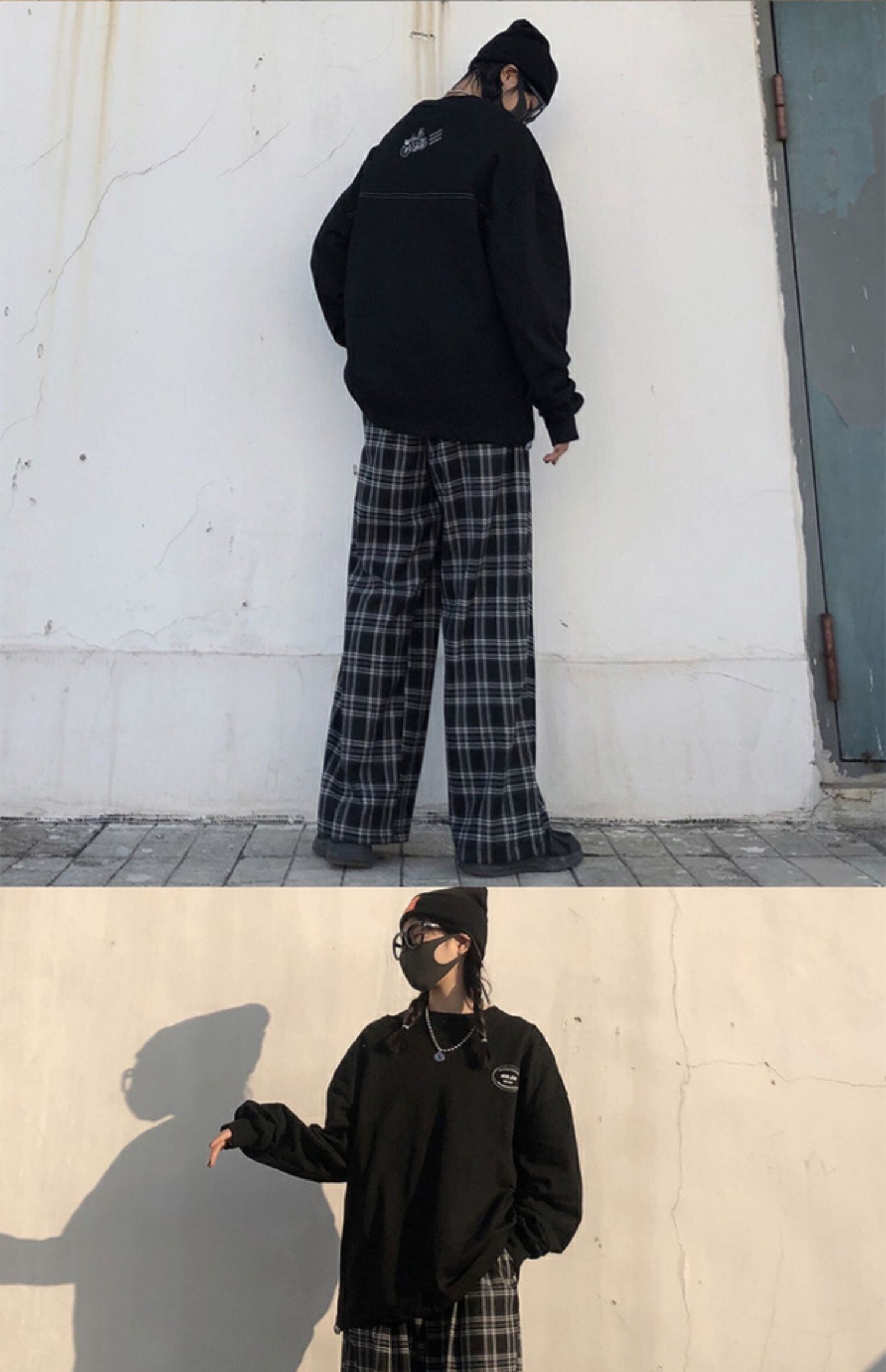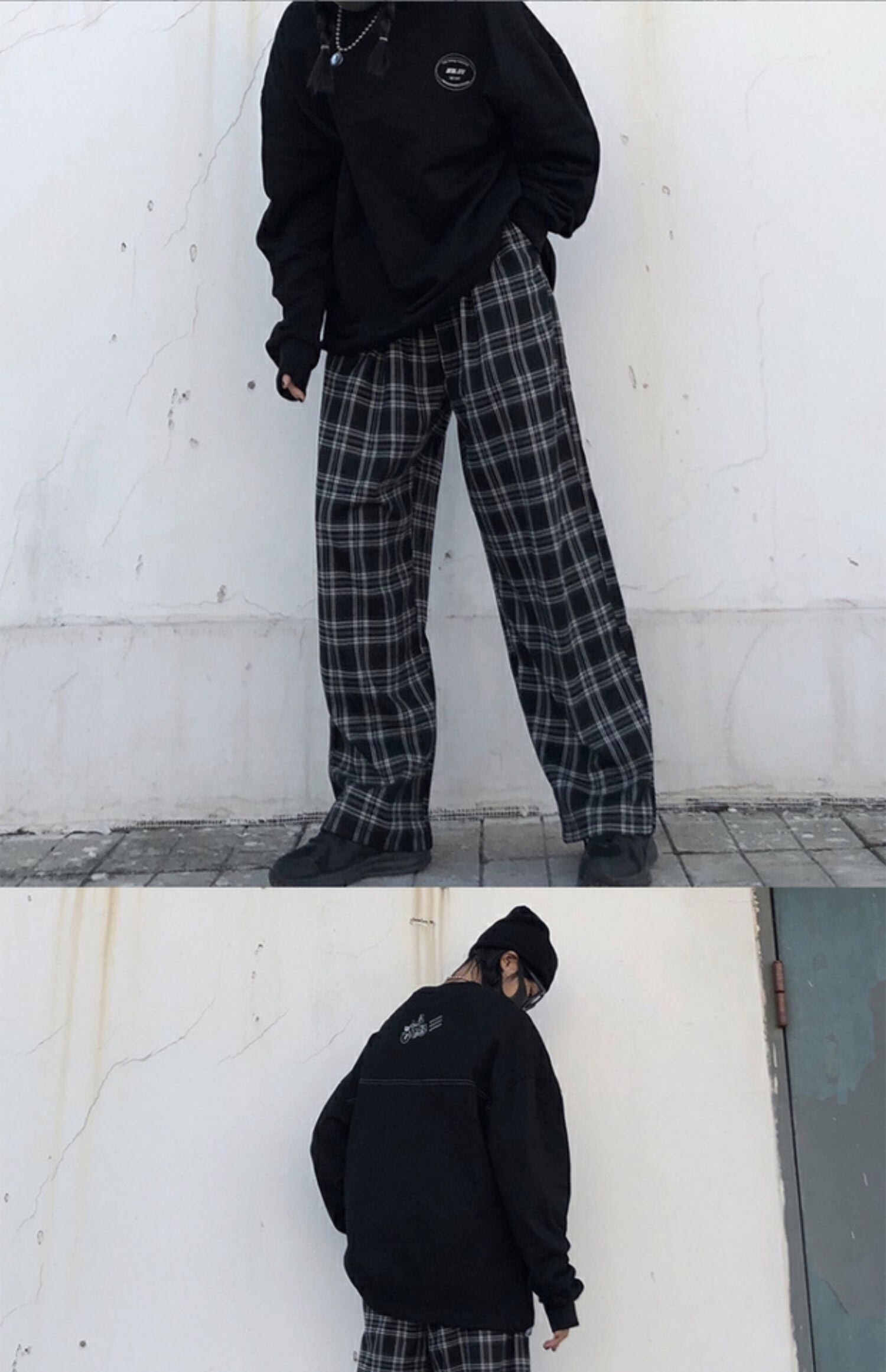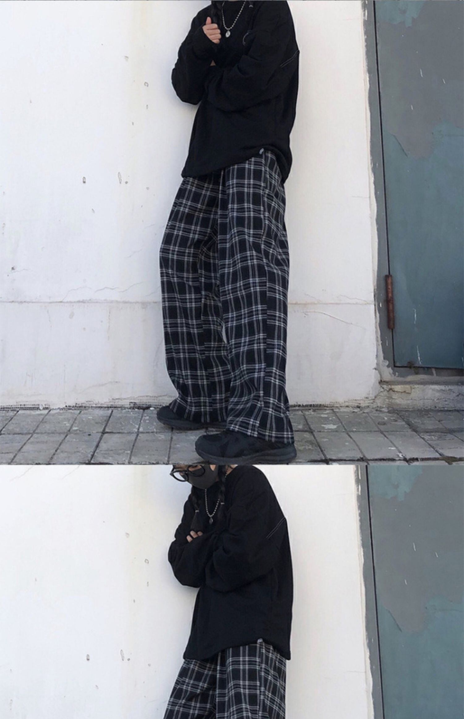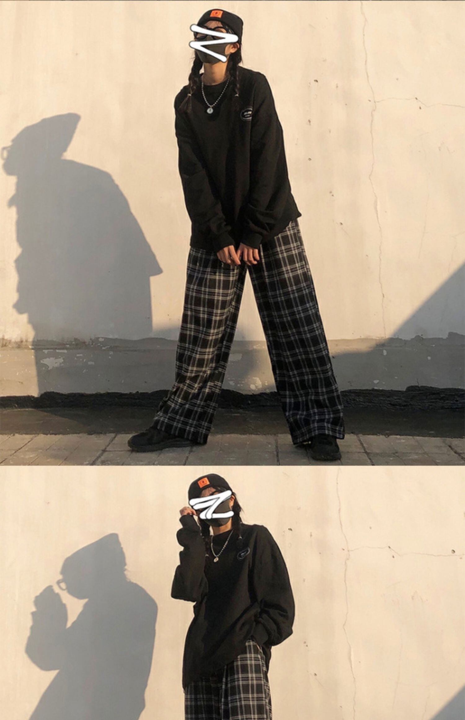 オータムウィンターパンツ スタンダードルーズ格子柄カジュアルレディース レトロ かわいい 秋物 冬物 ケッペル62562821972