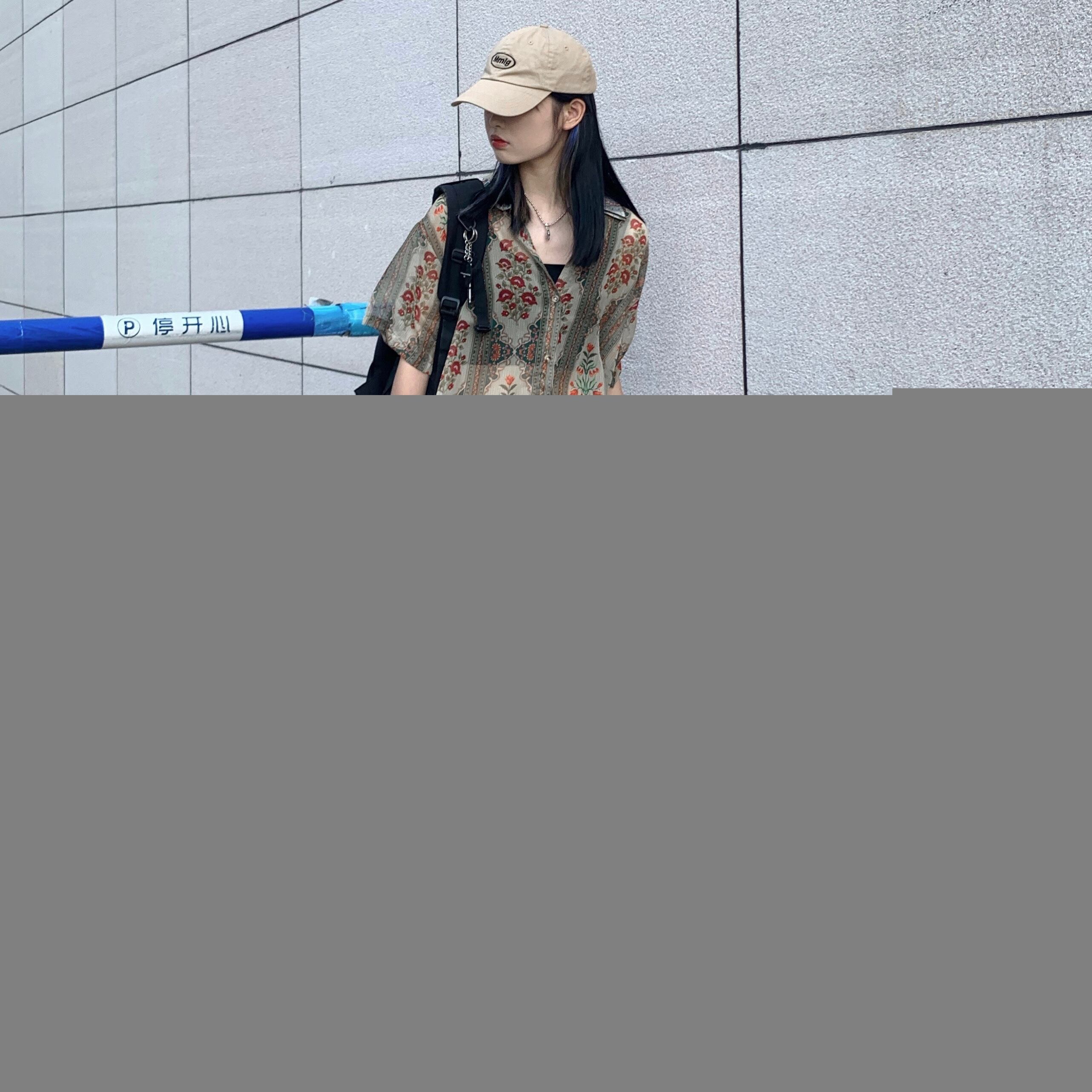 サマースタンダードプリントシフォンシャツ カジュアルトップス 薄手ルーズ レトロ 夏物 ケッペル11645563764