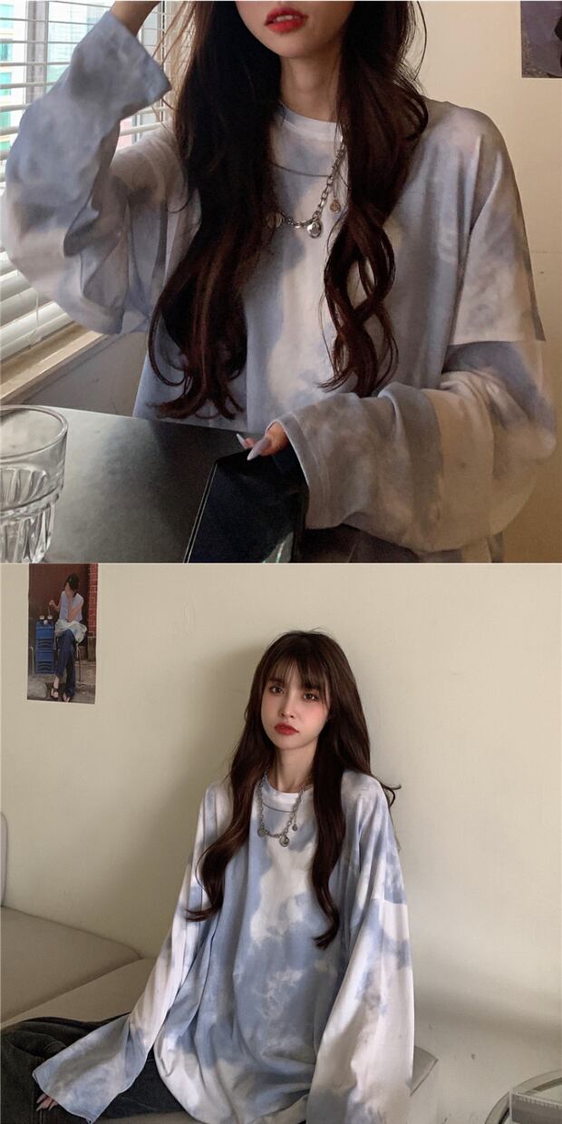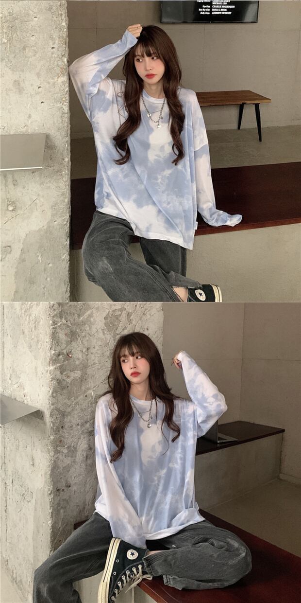 スタイルTシャツ シャツ スタンダードルーズラウンドネックトップス ロング レトロ ストリート 大きめサイズ かわいい Oネック ケッペル98107657241