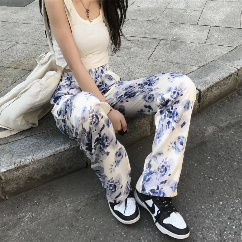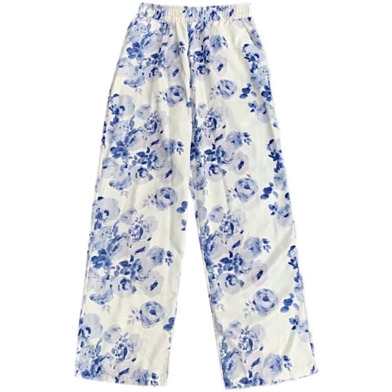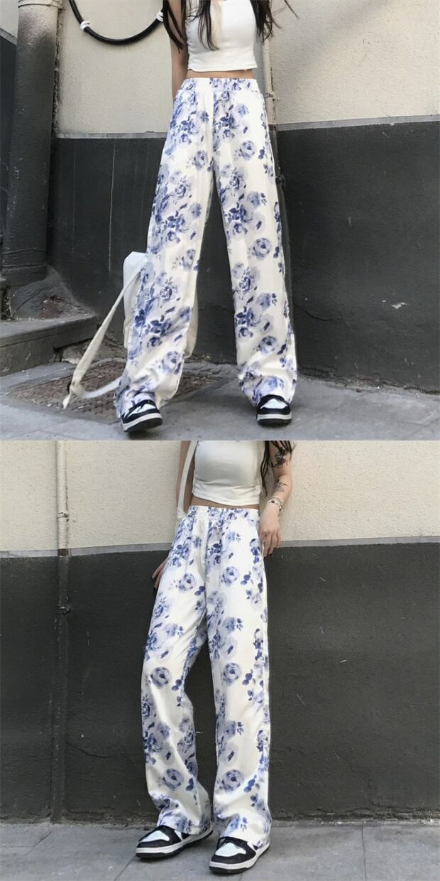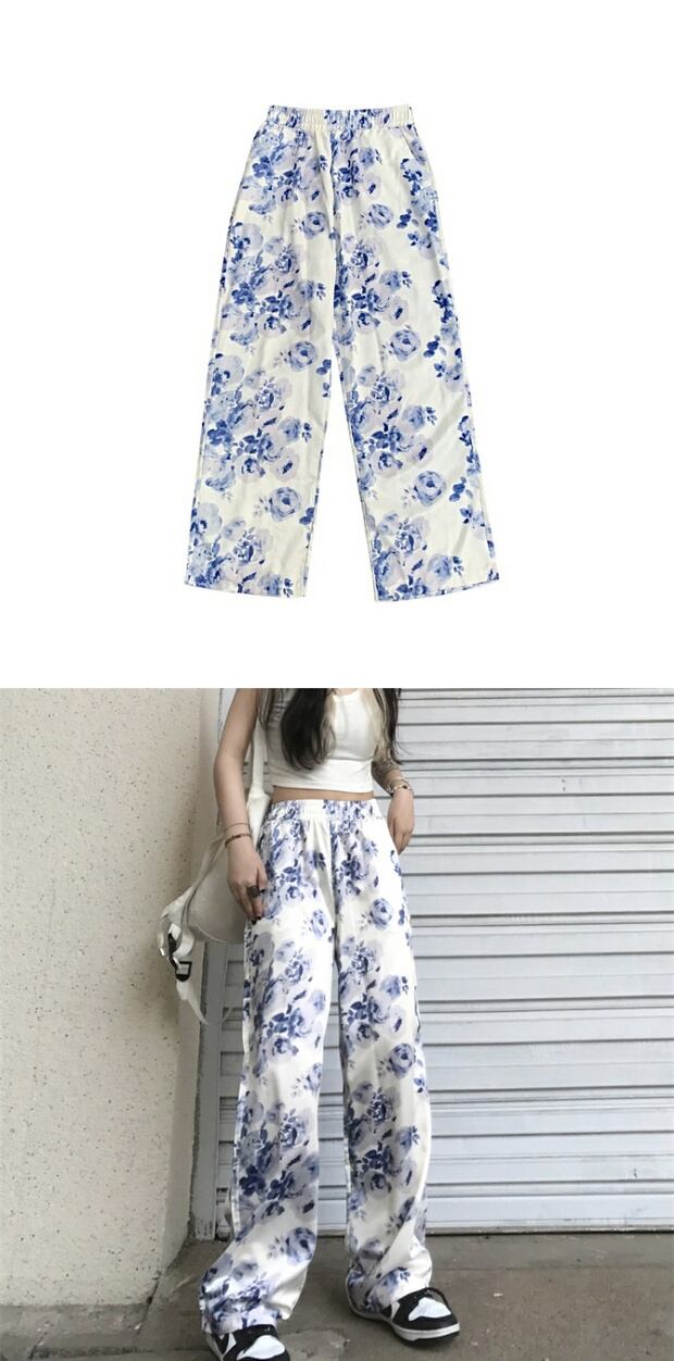 スタイルサマーワイドレッグパンツ スタンダードFlowerデザイン プリント柄 レトロ ストリート かわいい 夏物 ワイドパンツ フラワーデザイン ケッペル47488512980