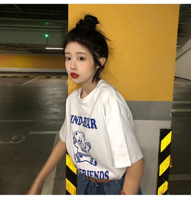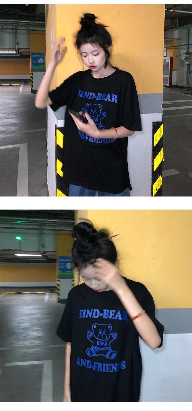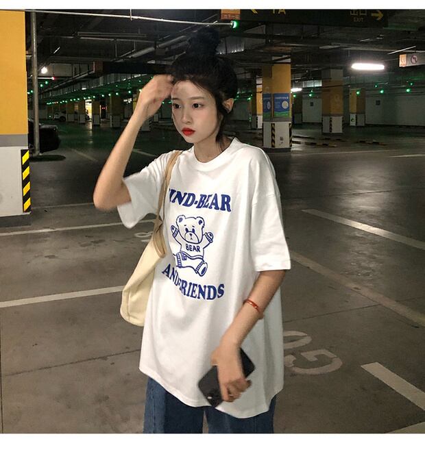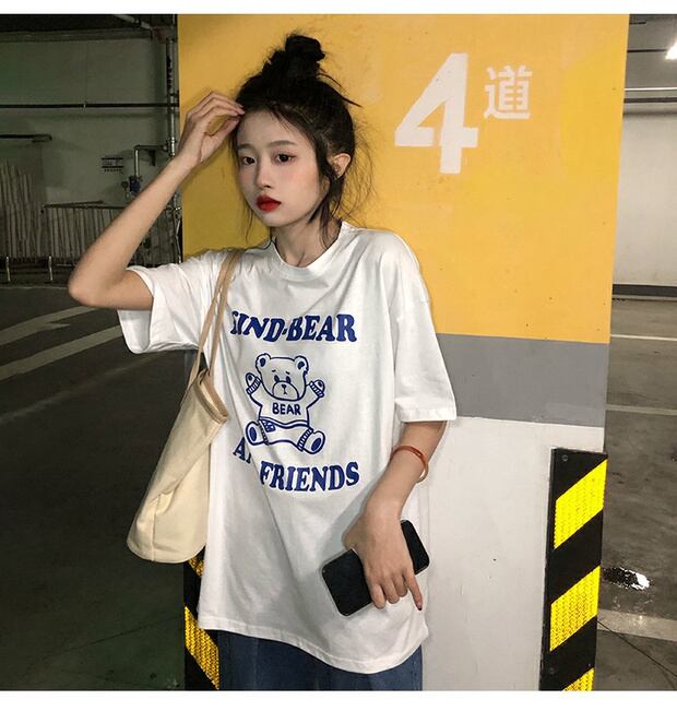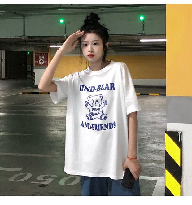 ルーズカジュアルプリント柄Tシャツ サマートップス コットン 夏物 ケッペル68043085623