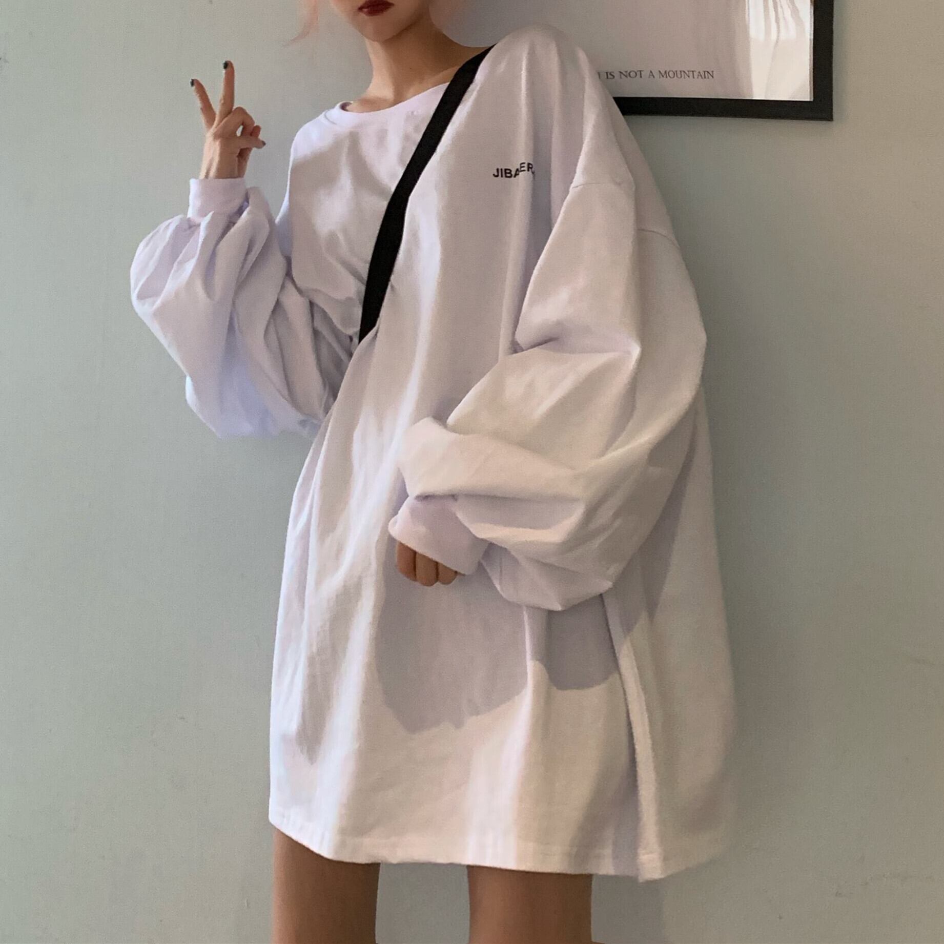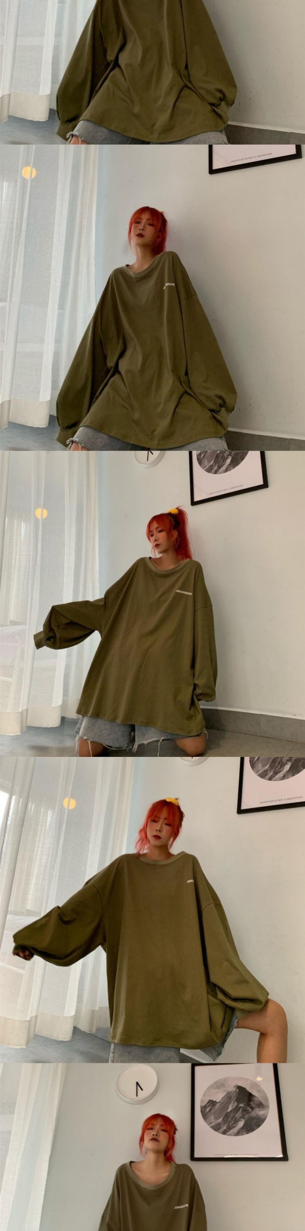 スタイルソリッド カラーTシャツ オータムルーズトップス ロング ランタンスリーブ 大きめサイズ かわいい 秋物 ソリッドカラー ケッペル51647600775