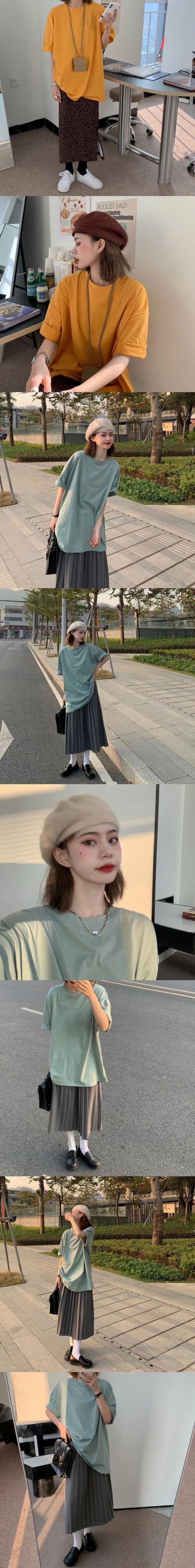 Tシャツ サマースタイルルーズカラーロング半袖スリーブトップス レディース ショート ハーフスリーブ 夏物 ピュア ケッペル21522255049