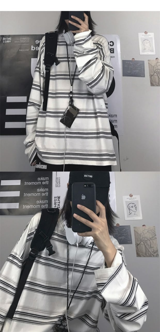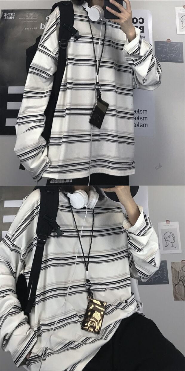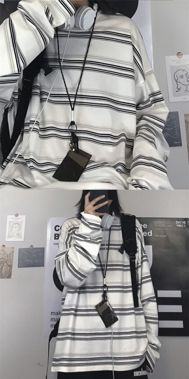オータムトップス ストライプTシャツ シャツ レディースルーズラウンドネック かわいい 秋物 Oネック ケッペル10118594194