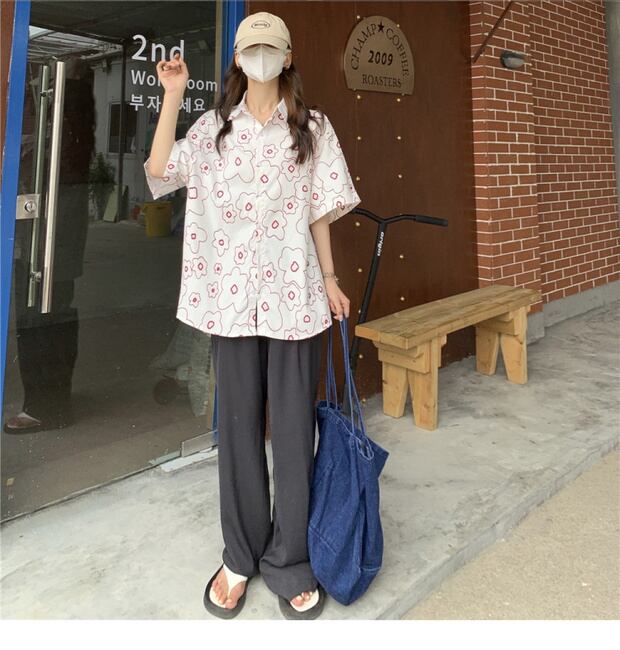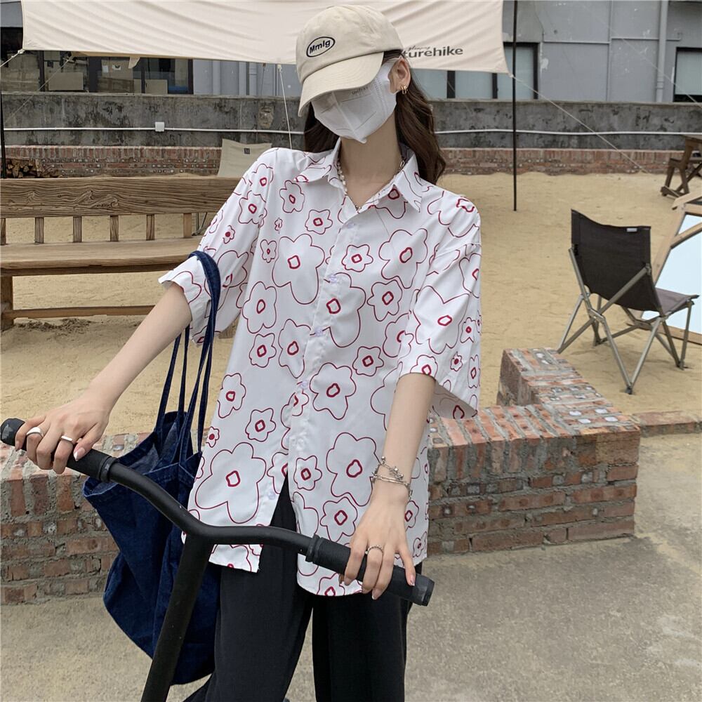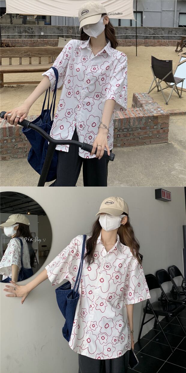 サマールーズシャツ カジュアルスタンダードプリント柄トップス レトロ 夏物 ケッペル94391175161