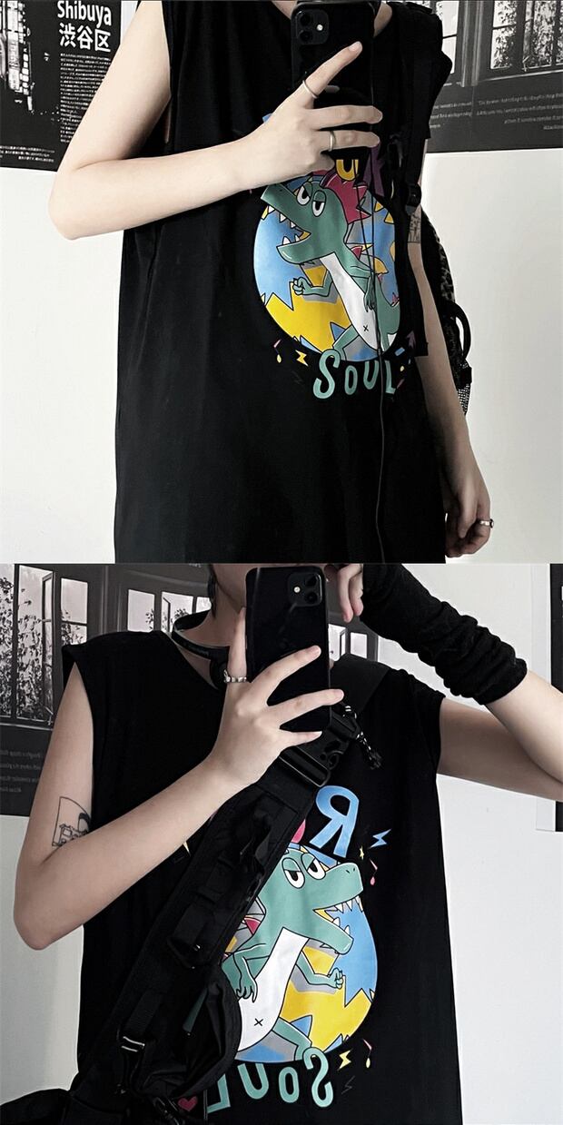 サマーレディースプリント柄スタンダードノースリーブTシャツ ラウンドネック レトロ 夏物 Oネック ケッペル57856647779