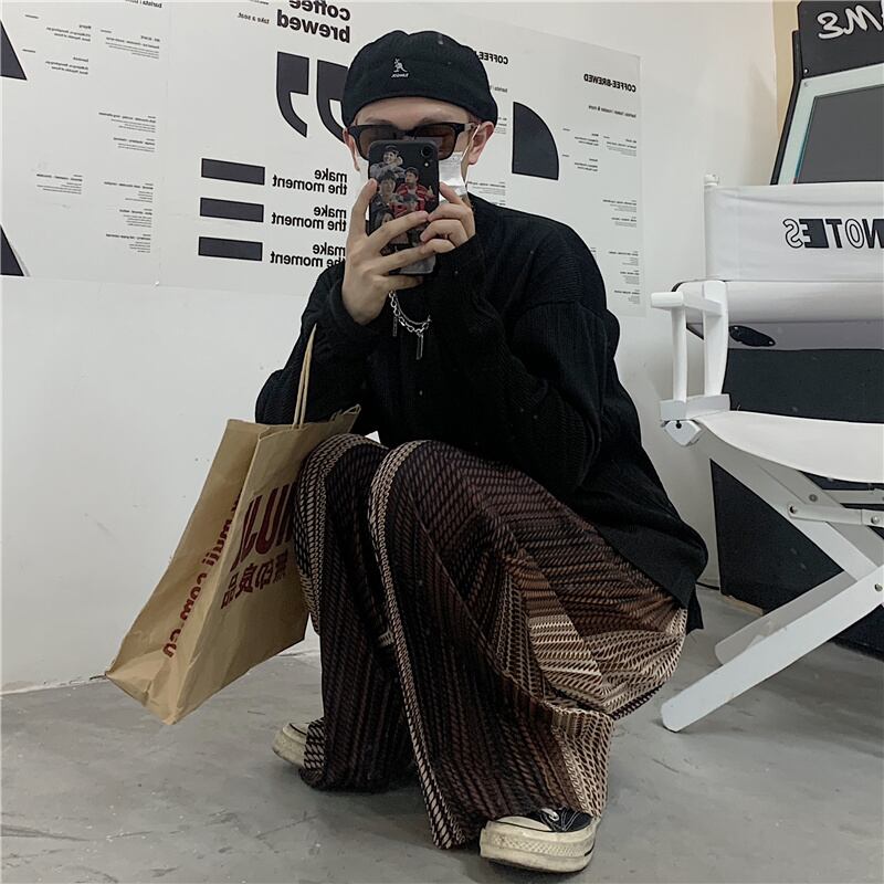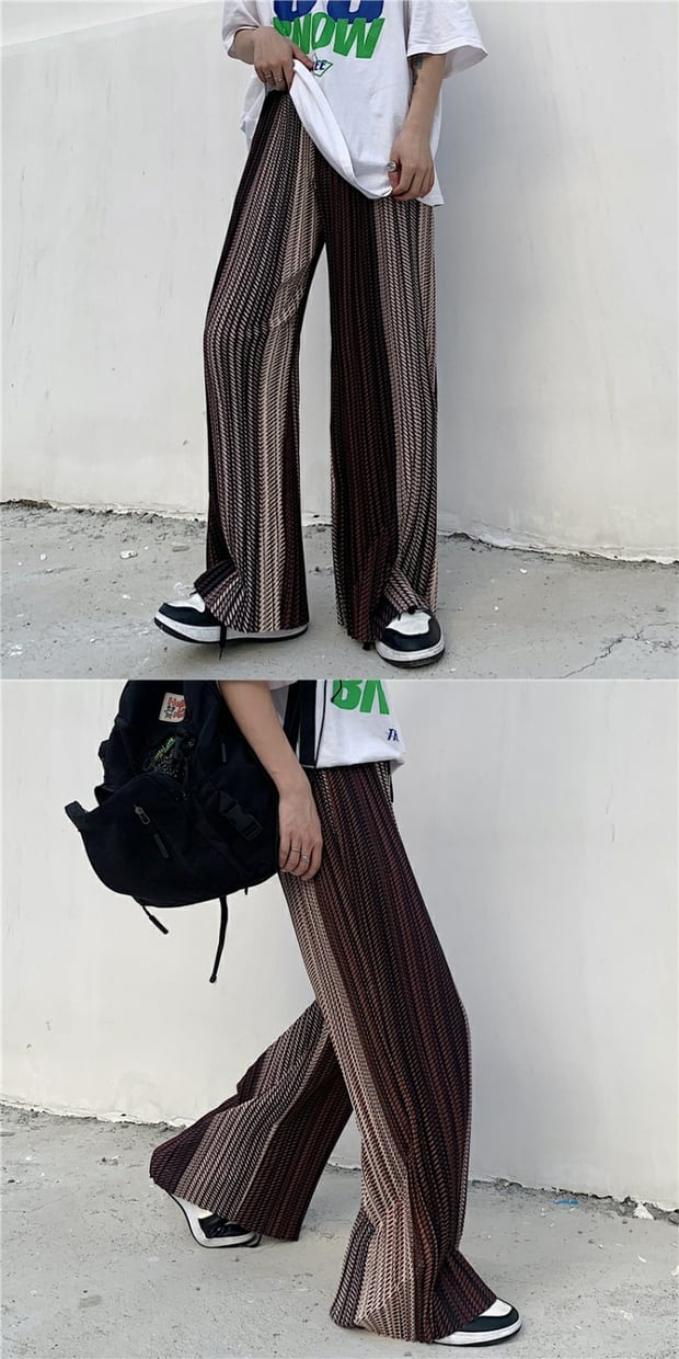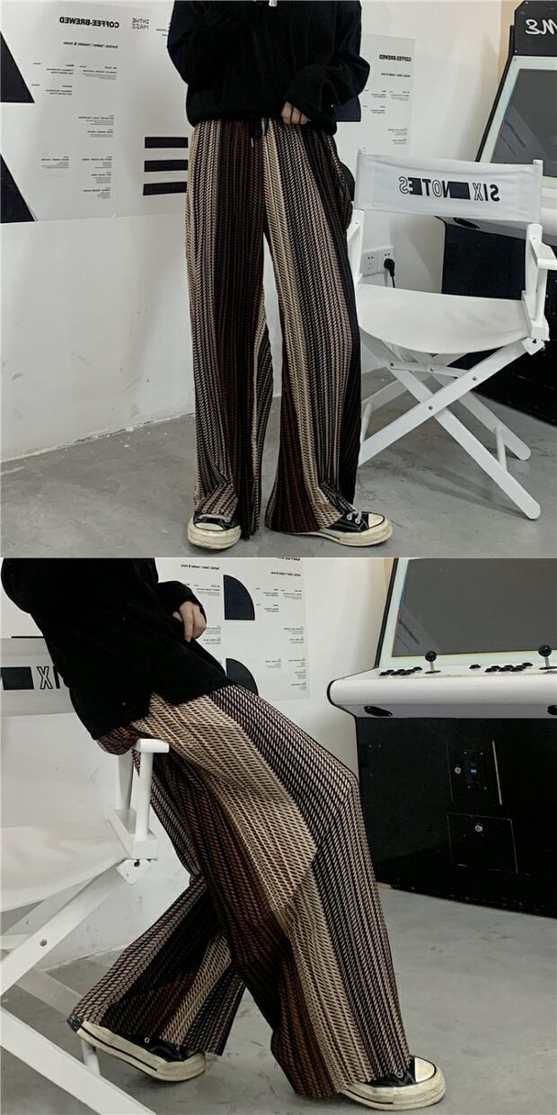 サマーカジュアルパンツ スタンダードストライプハイウェストウェストルーズ レトロ 夏物 シルク ケッペル70816418172