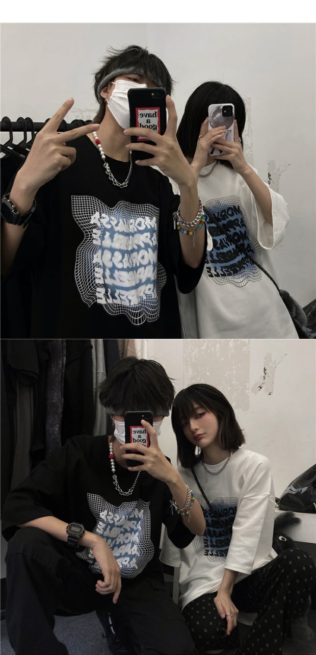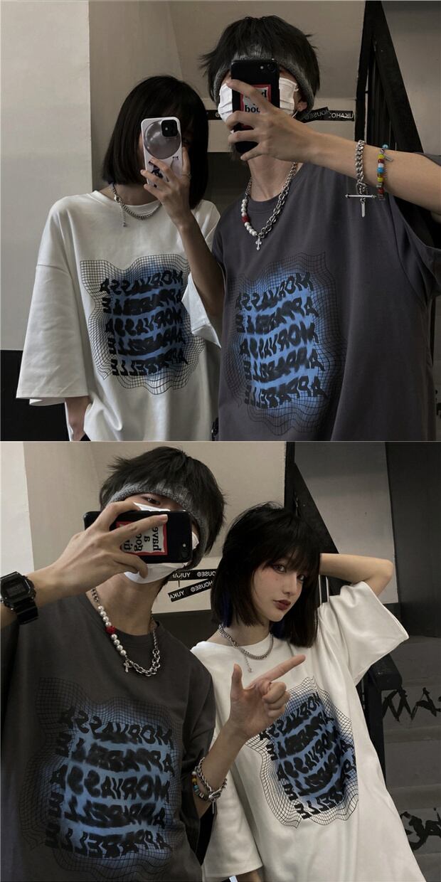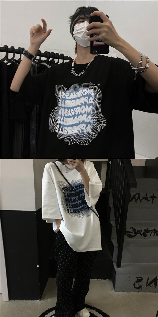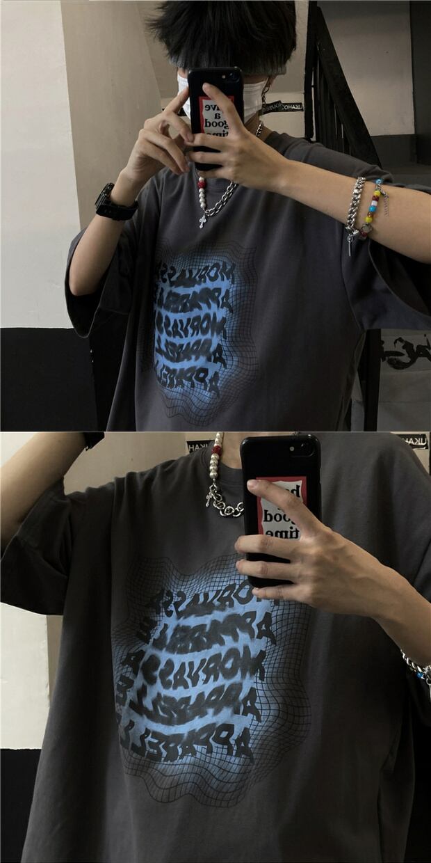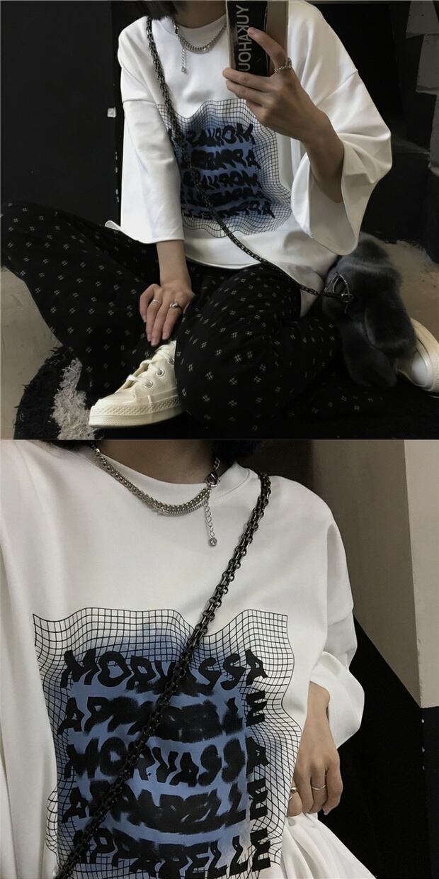 サマースタイルルーズプリントTシャツ ロングカジュアル かわいい 夏物 ケッペル80284140068