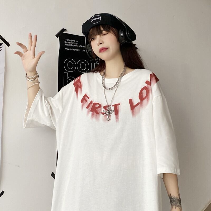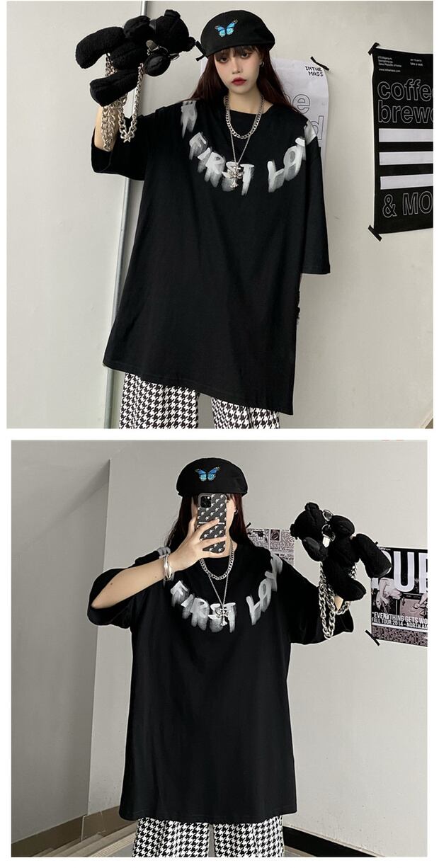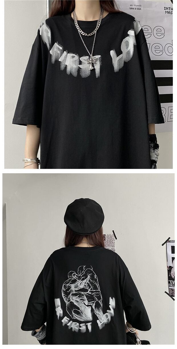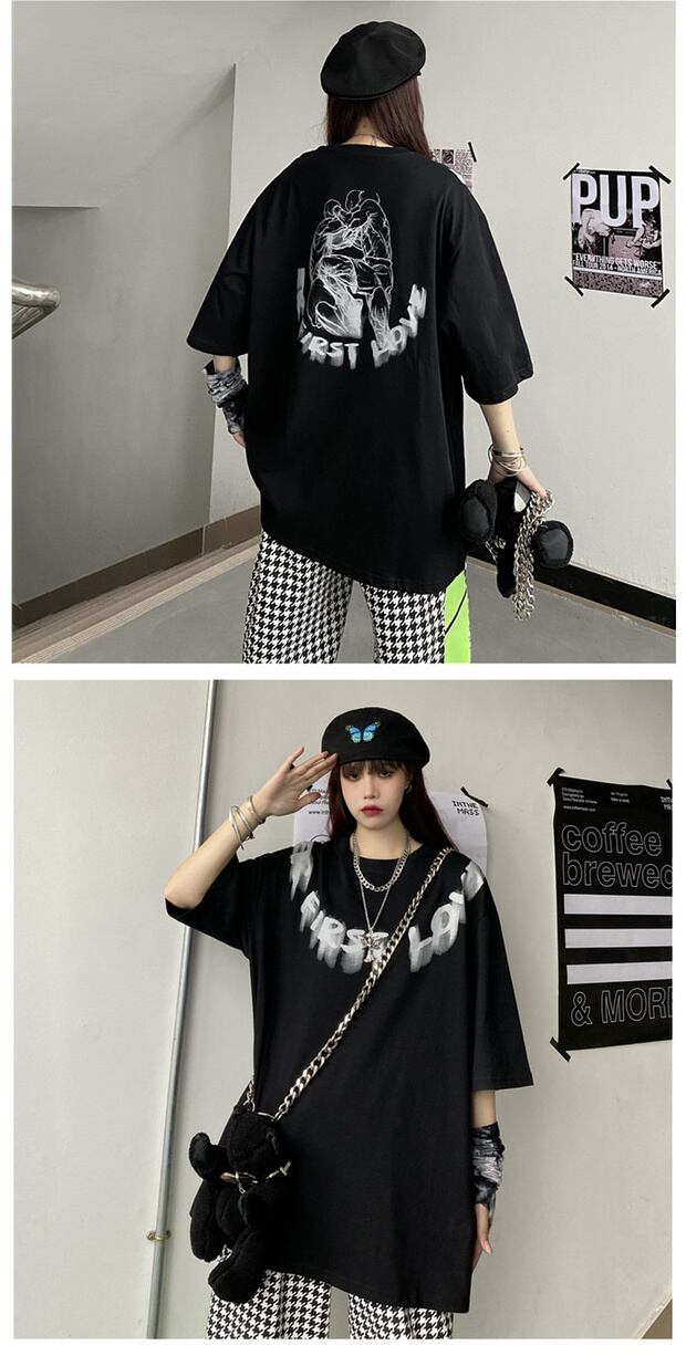 ダークレディースTシャツ ラウンドネックルーズサマー コットン 大きめサイズ 夏物 Oネック ピュア ケッペル56608652487