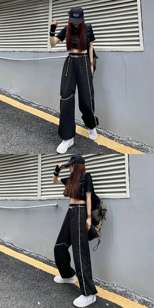 オーバーオール サマールーズカジュアルハイウェストウェストスリムパンツ ダーク 夏物 ケッペル84097295264