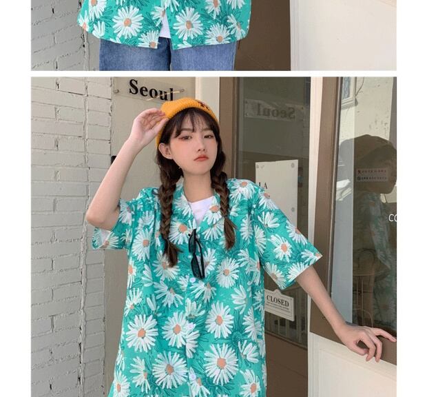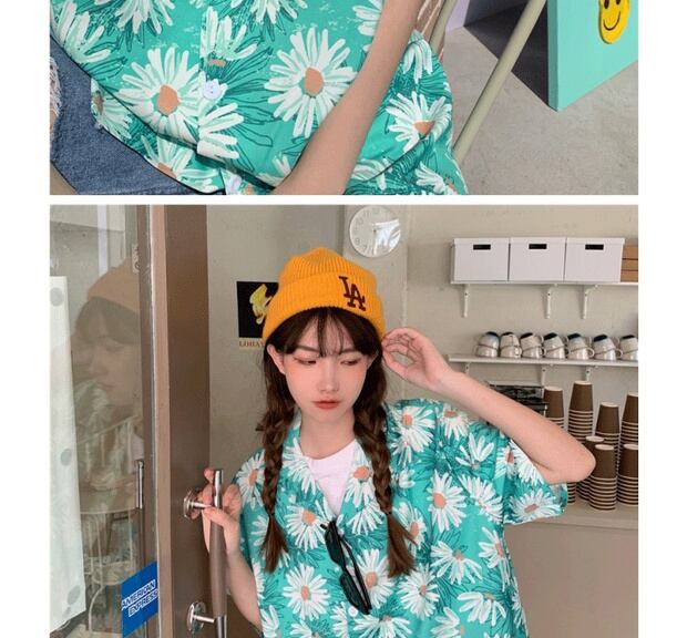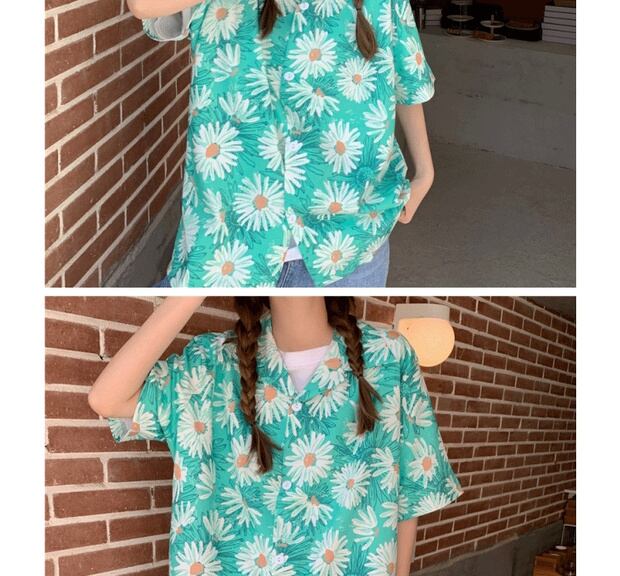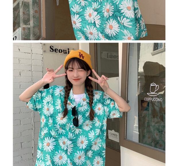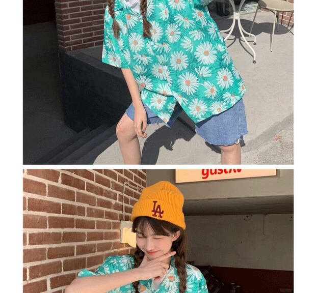 サマースタンダードシャツ Flowerデザイン ルーズカジュアルカラーTシャツ トップス レトロ 夏物 フラワーデザイン ケッペル56859322808